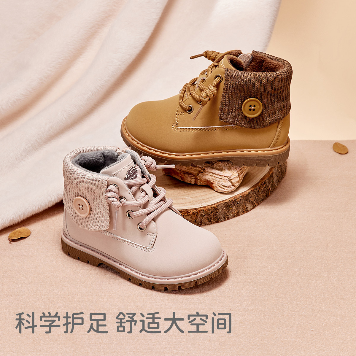戴维贝拉童鞋男童靴子冬季新款女童马丁靴儿童宝宝加绒防滑鞋子