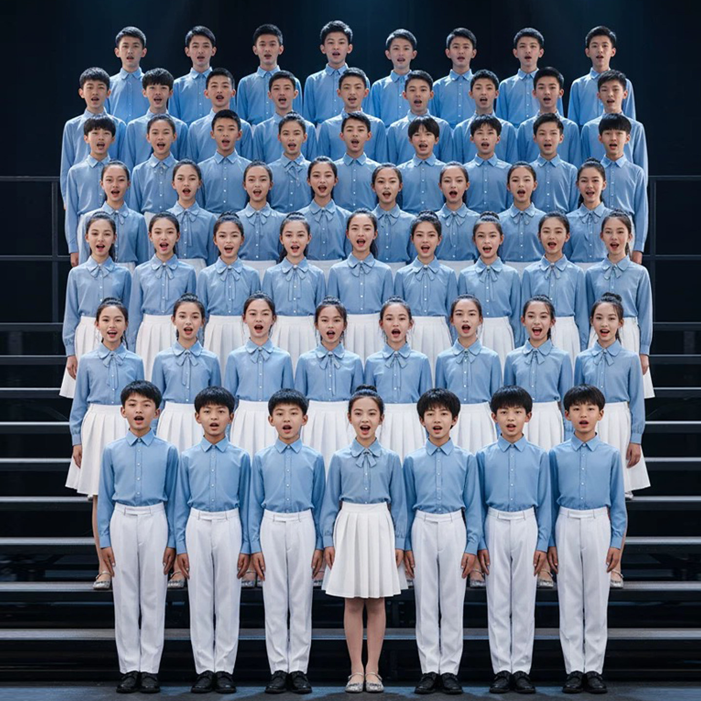六一儿童合唱演出服蓝色中小学生诗朗诵团体演讲比赛男女表演礼服