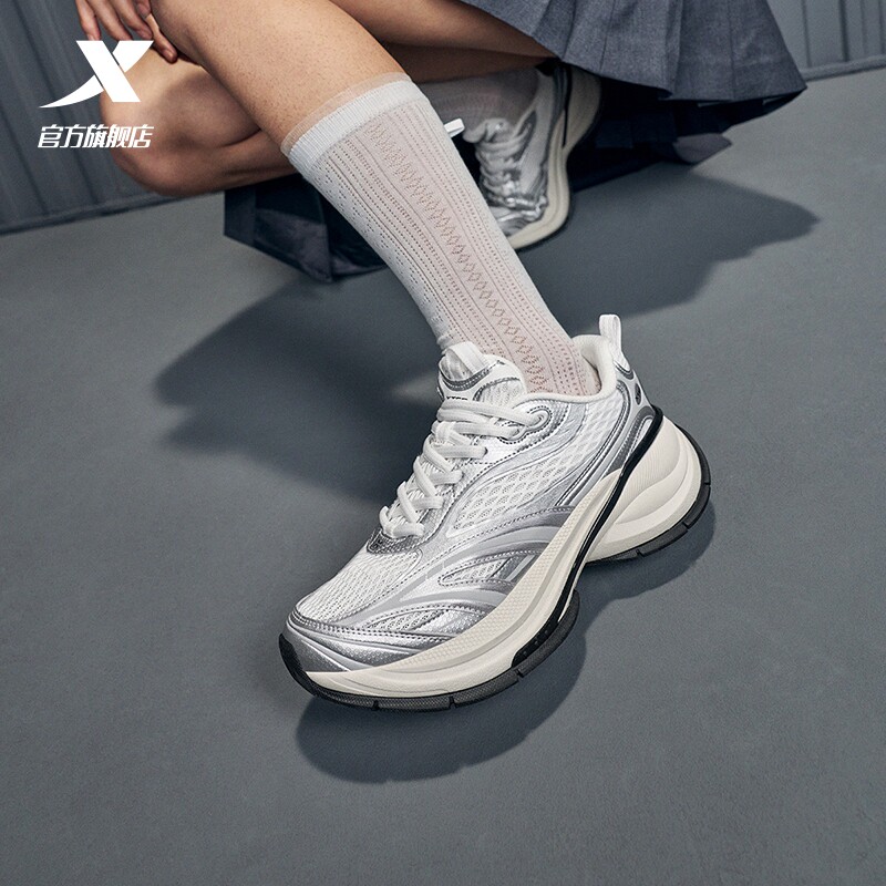 范丞丞同款丨特步巴斯克3休闲鞋女夏季网面复古老爹鞋增高运动鞋