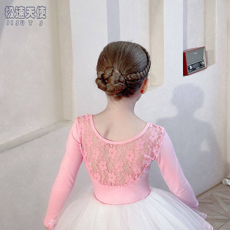 儿童舞蹈服女童练功服粉色蕾丝秋冬长袖考级中国舞幼儿芭蕾舞裙子