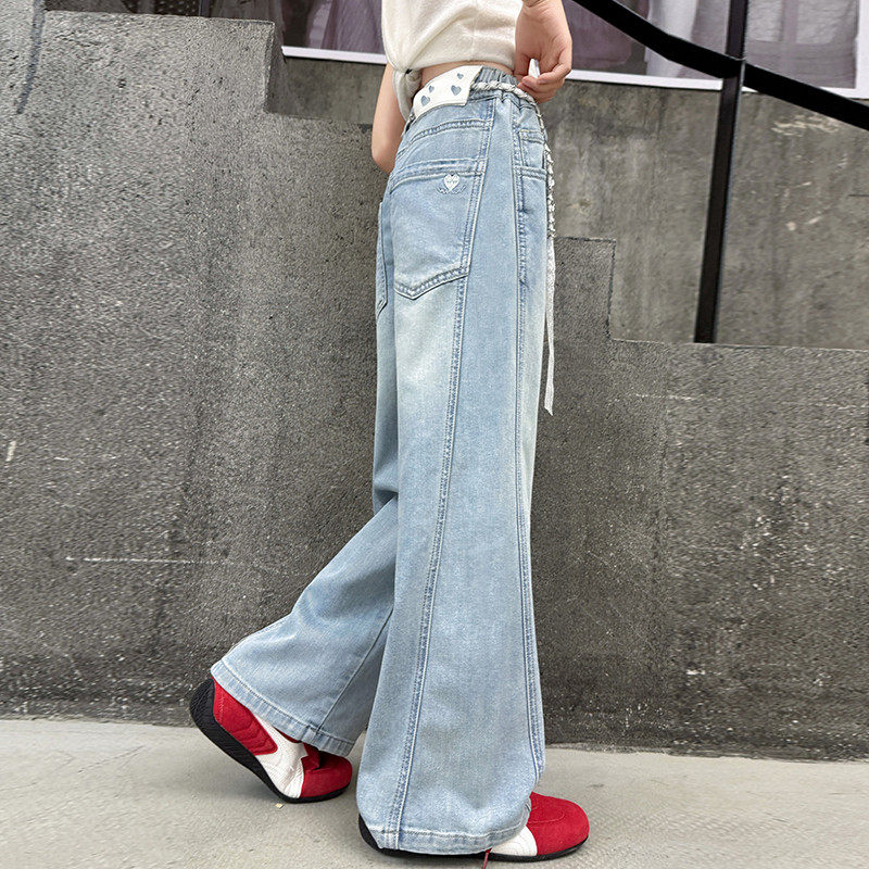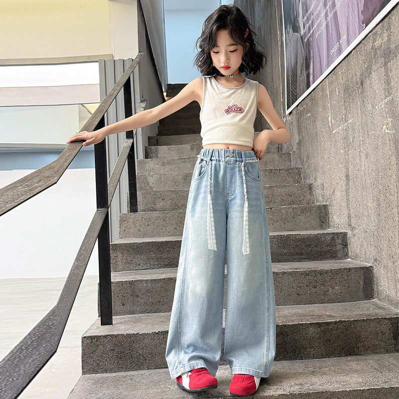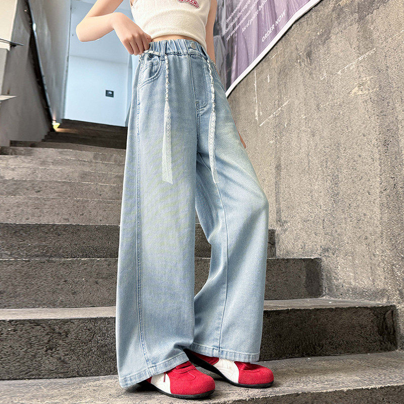 女童牛仔裤2025儿童裤子新款洋气时髦女孩阔腿裤春夏季薄款中大童