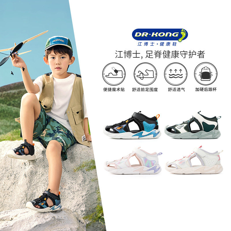 江博士奥莱特卖男女童鞋网布透气魔术贴2024新款运动风儿童凉鞋夏