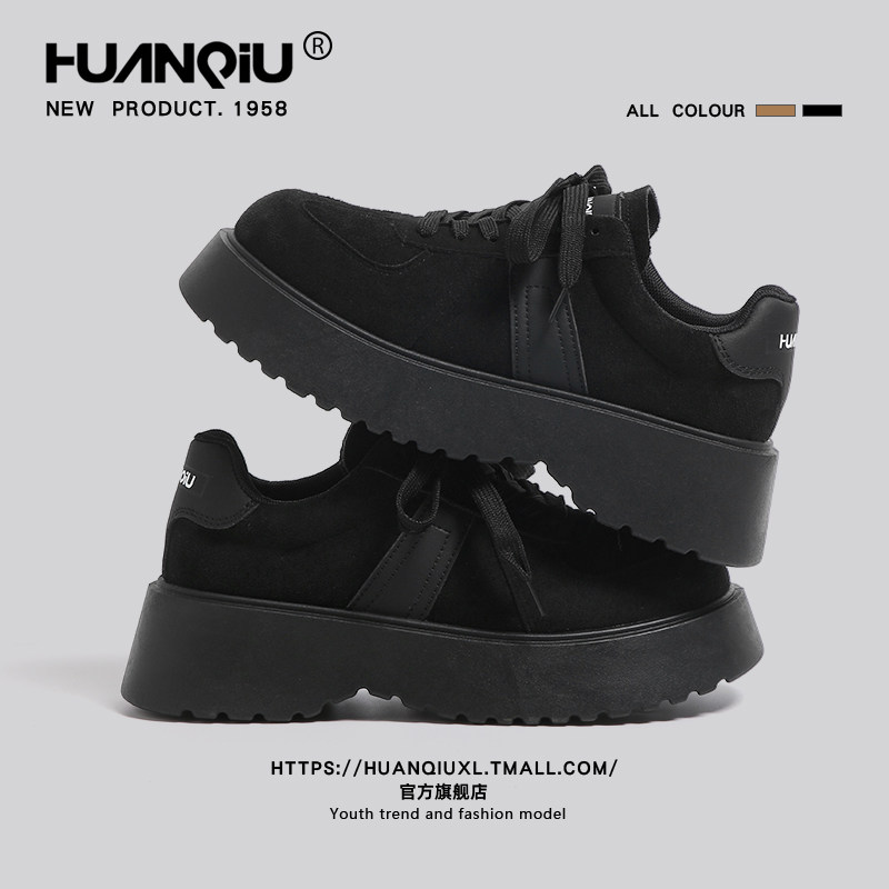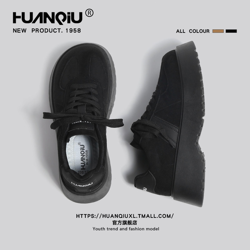 环球黑色德训鞋女款2026新款春季巨好看厚底增高软底不累脚勃肯鞋