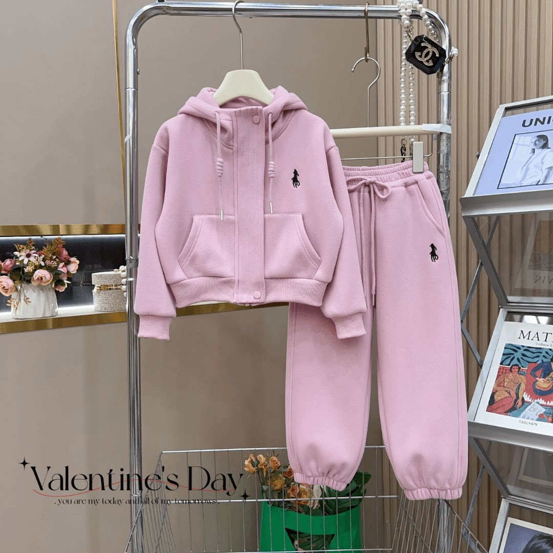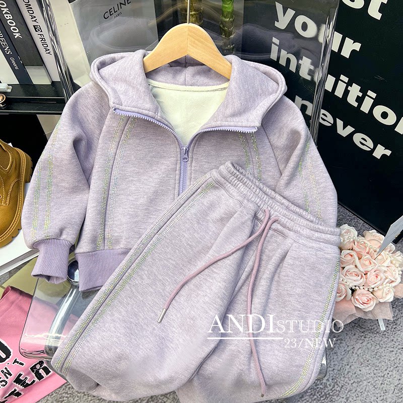 女童套装春装2026新款儿童秋冬季洋气加绒卫衣运动裤两件套韩版潮
