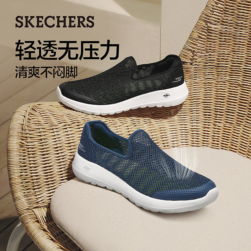 斯凯奇夏季流行男鞋健步鞋一脚蹬软底休闲运动鞋散步鞋透气网面鞋