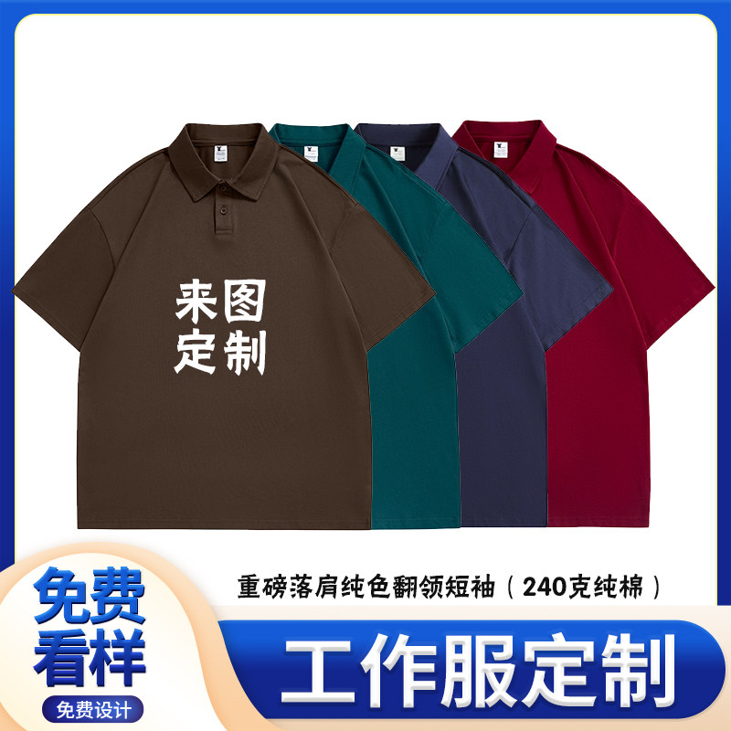 重磅落肩240克短袖纯棉翻领T恤定制印字刺绣logo工作服班服POLO衫