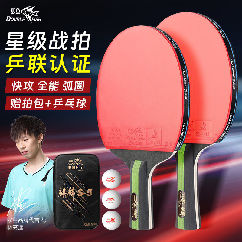 双鱼乒乓球拍专业成品拍56星胶皮初学者儿童中小学生专用正品单拍