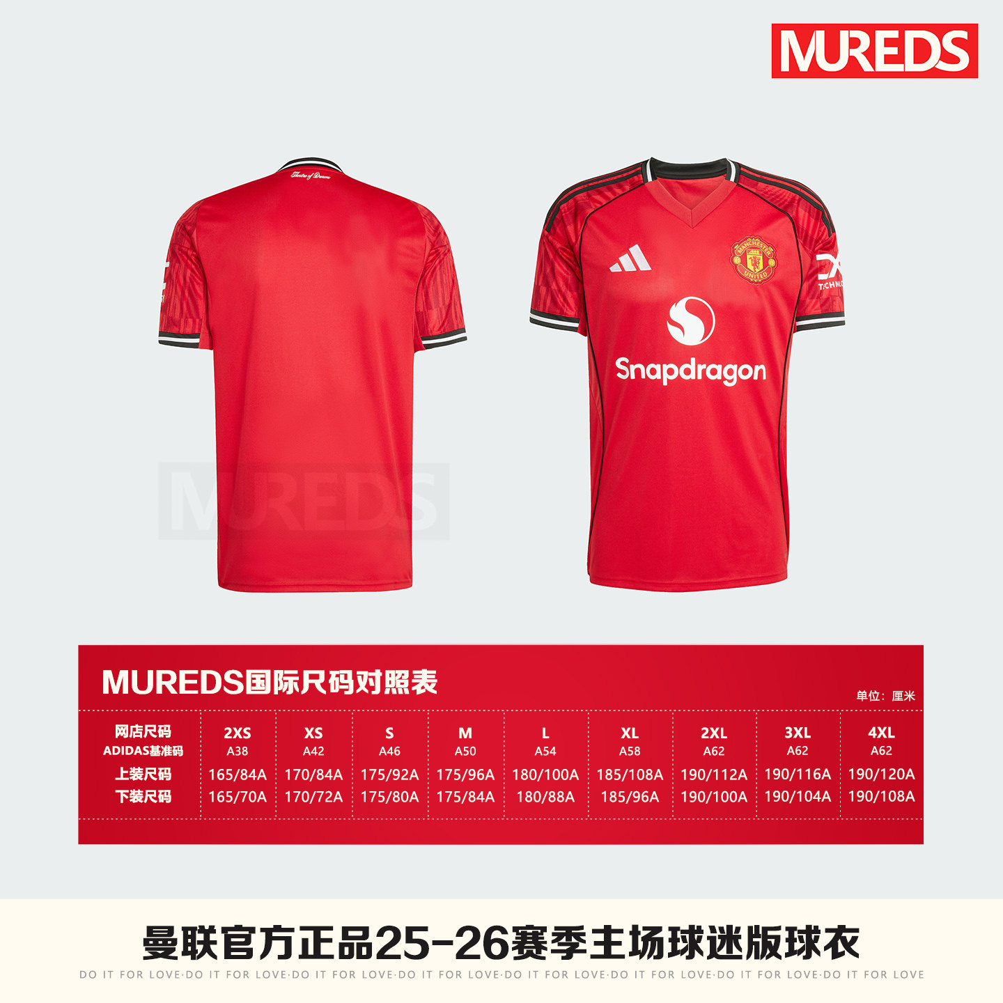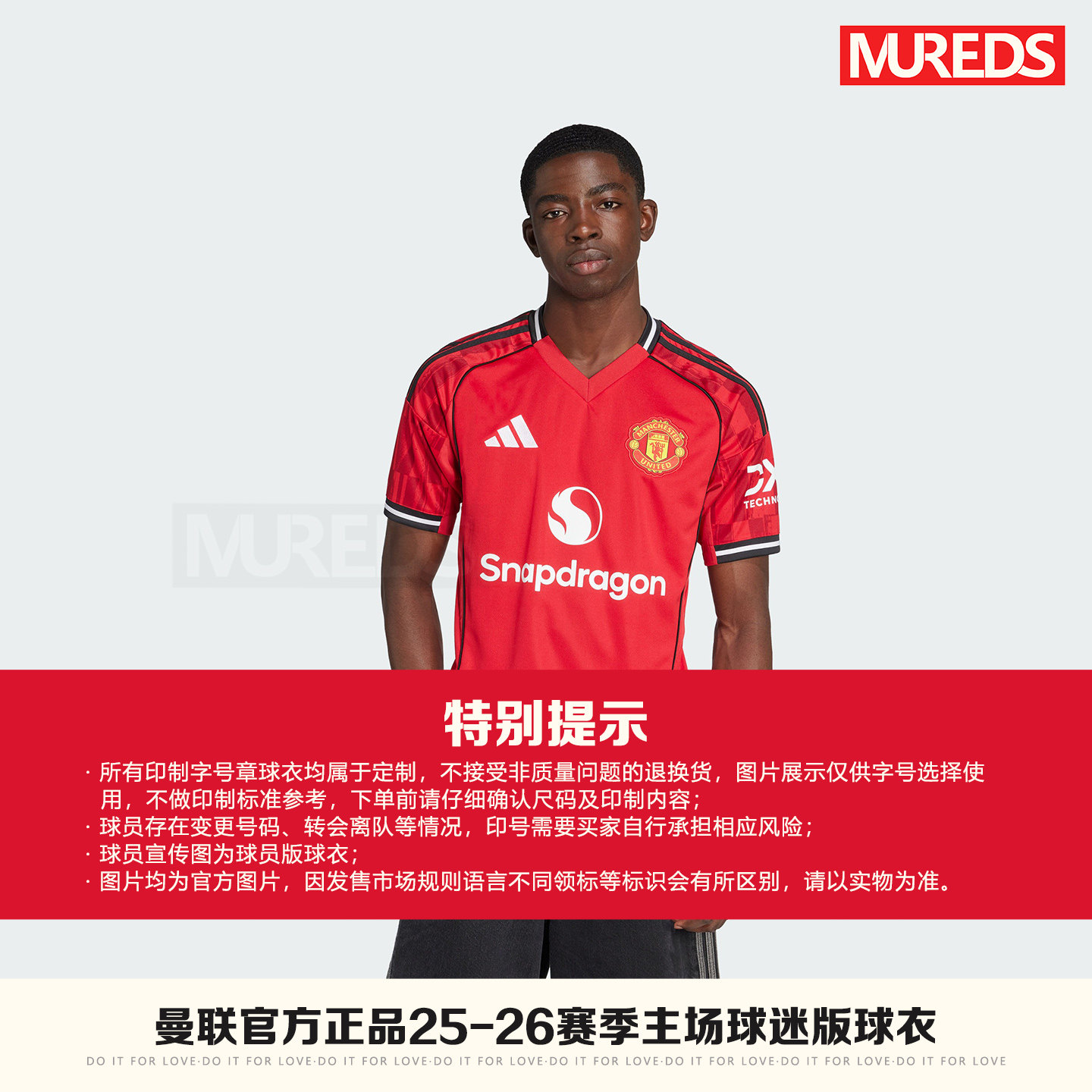 曼联官方正品阿迪达斯25-26赛季主场男子球迷版短袖球衣JI7428