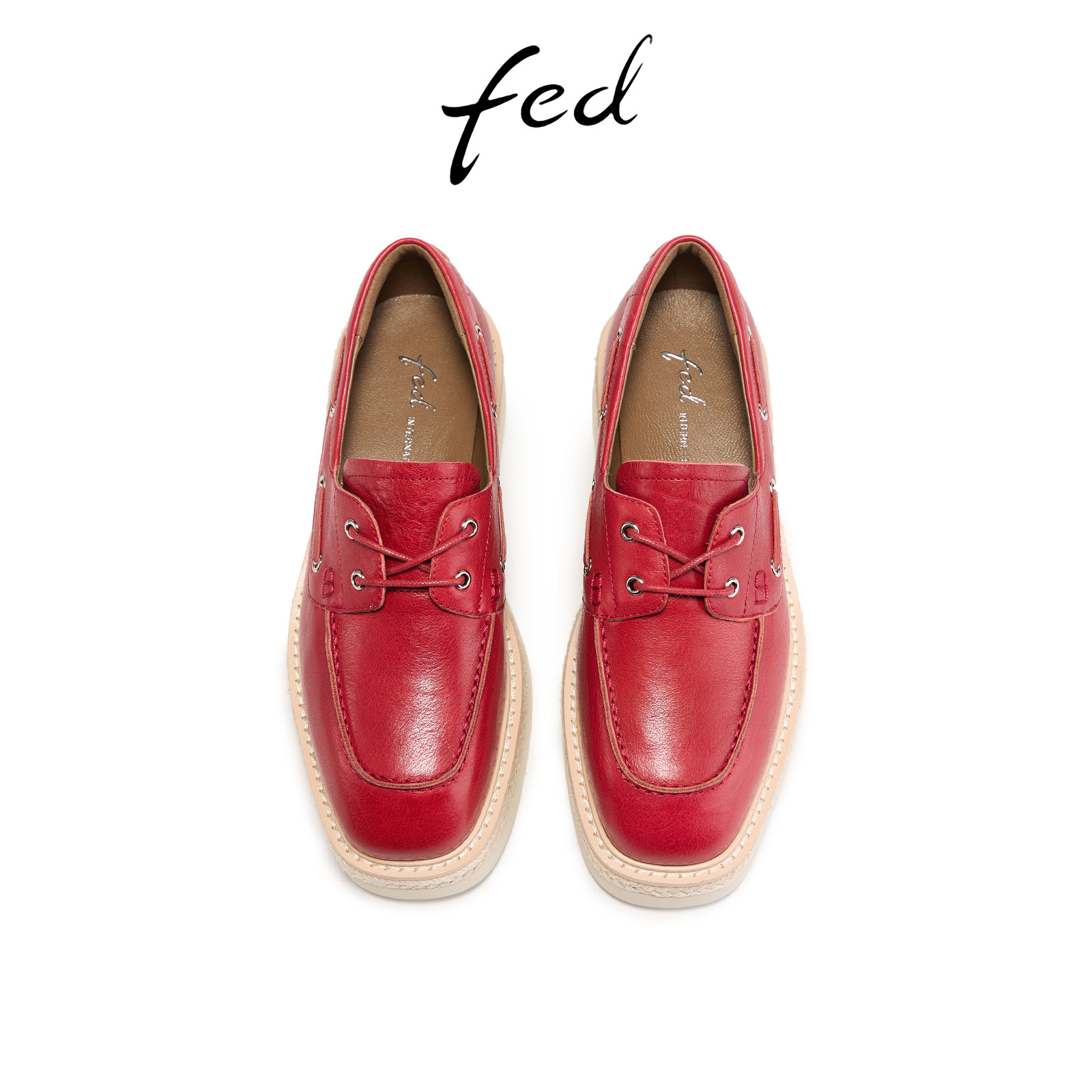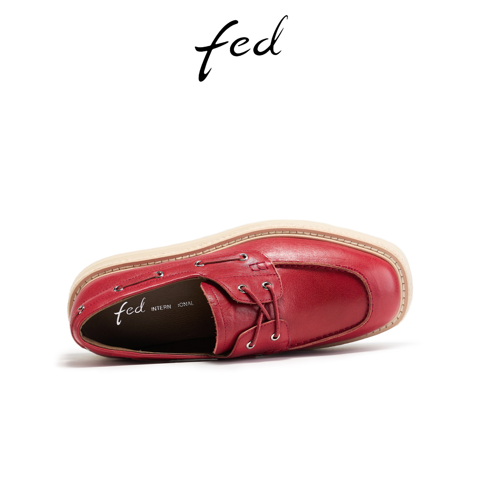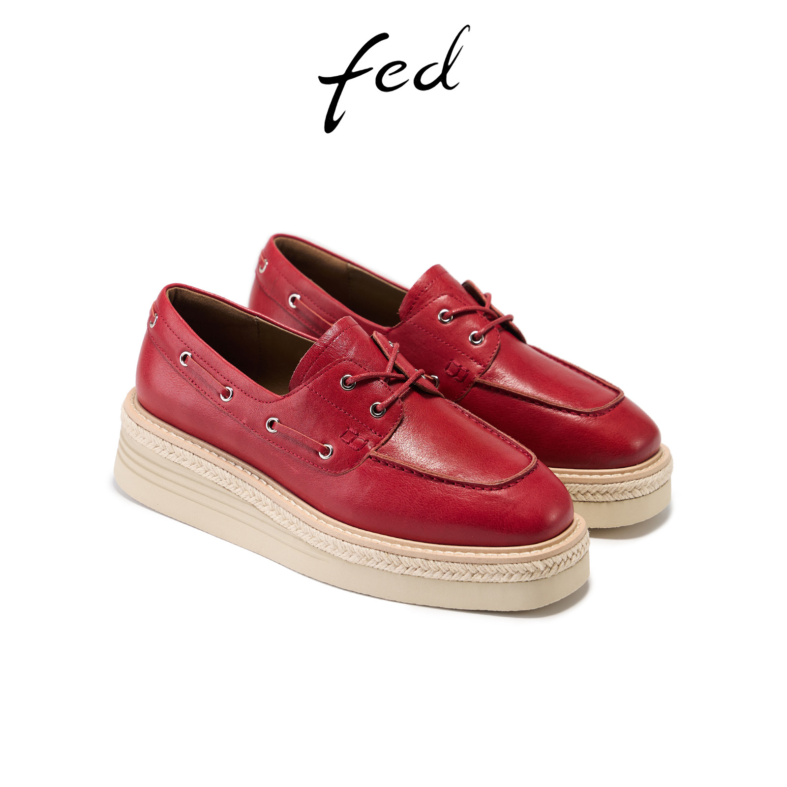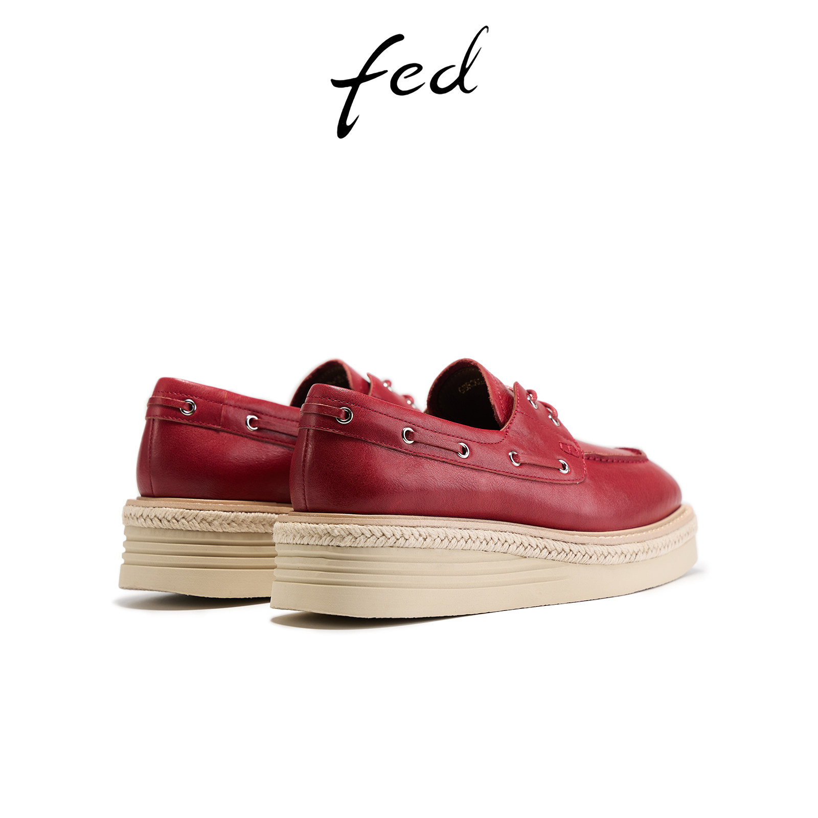 FED赤浪踏痕乐福鞋春季新款女鞋厚底单鞋酒红色渔夫鞋女款YAB002