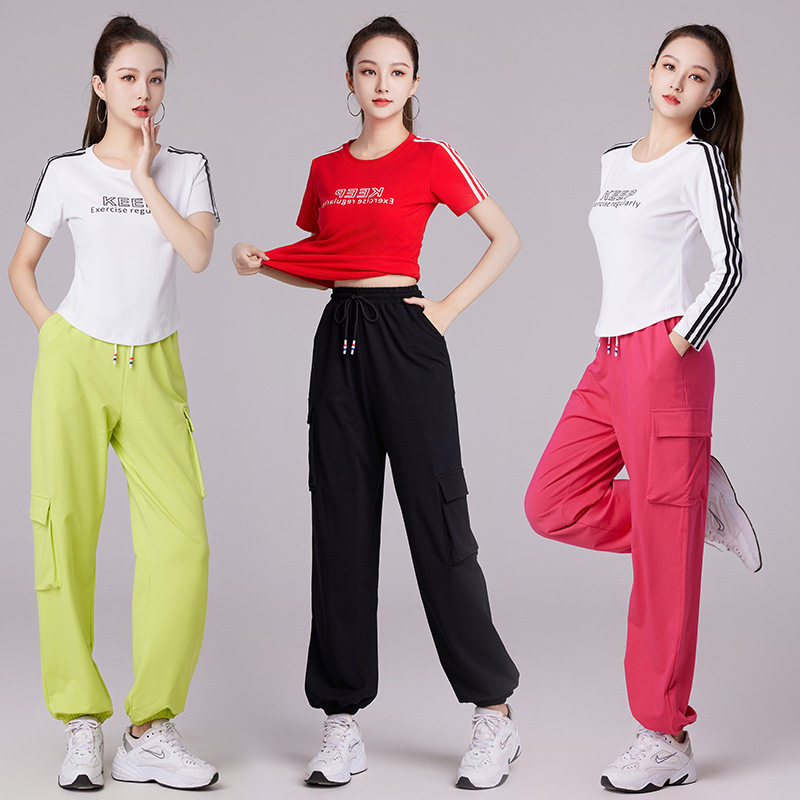 叶柔春夏新款广场舞服运动套装鬼步舞棉休闲服印花字母衣服成人女