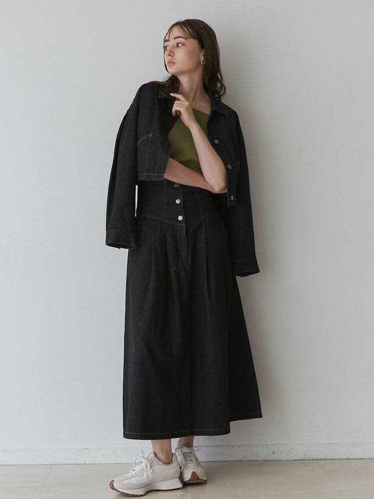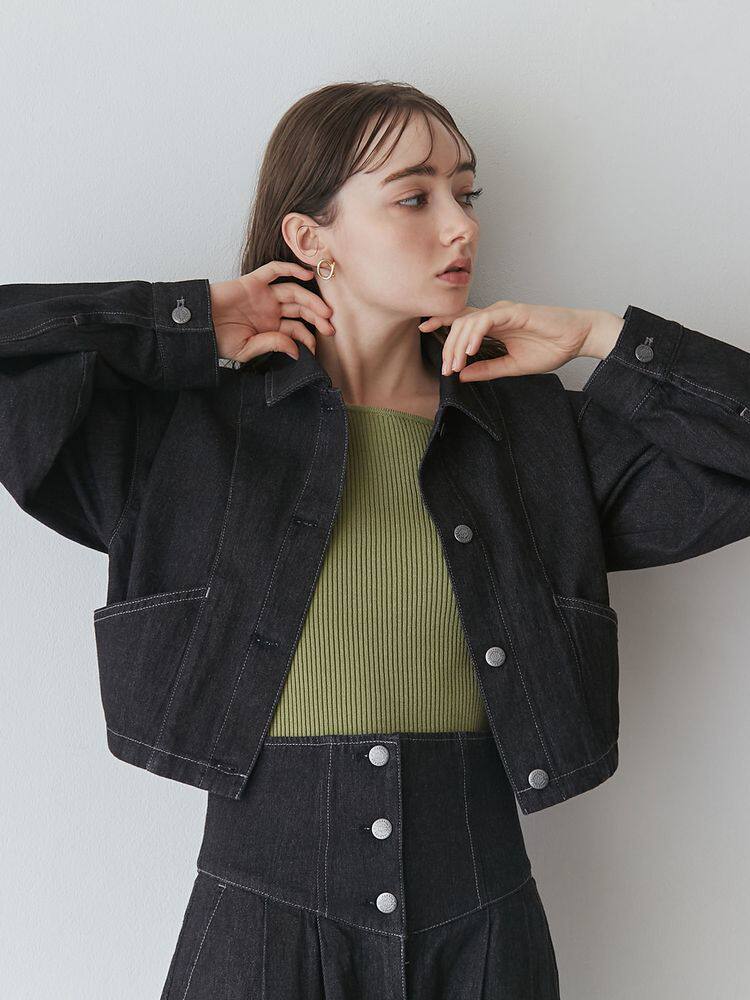 初原家女士牛仔外套女款短款长袖上衣春秋百搭黑色日系小款