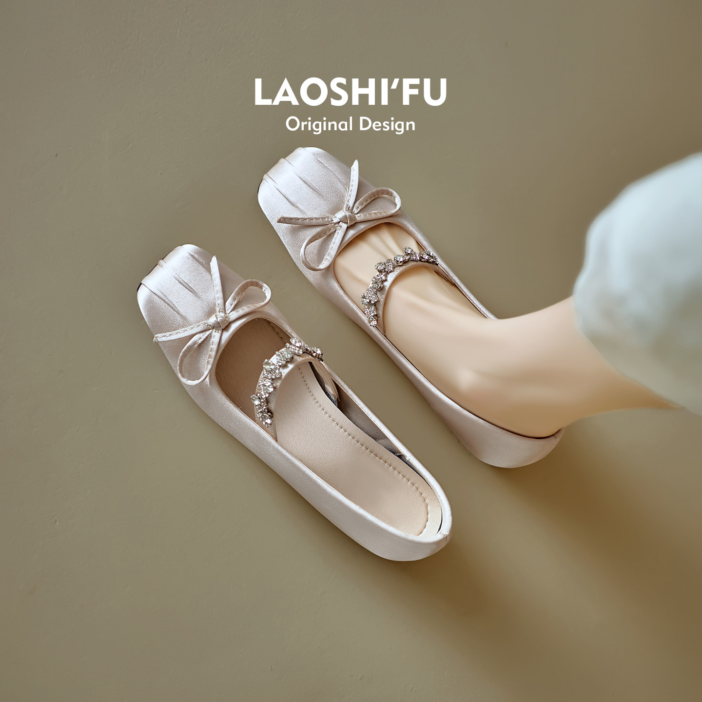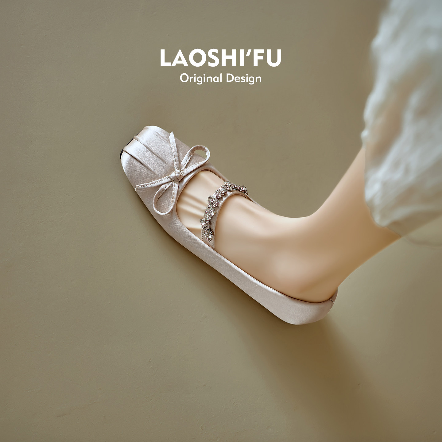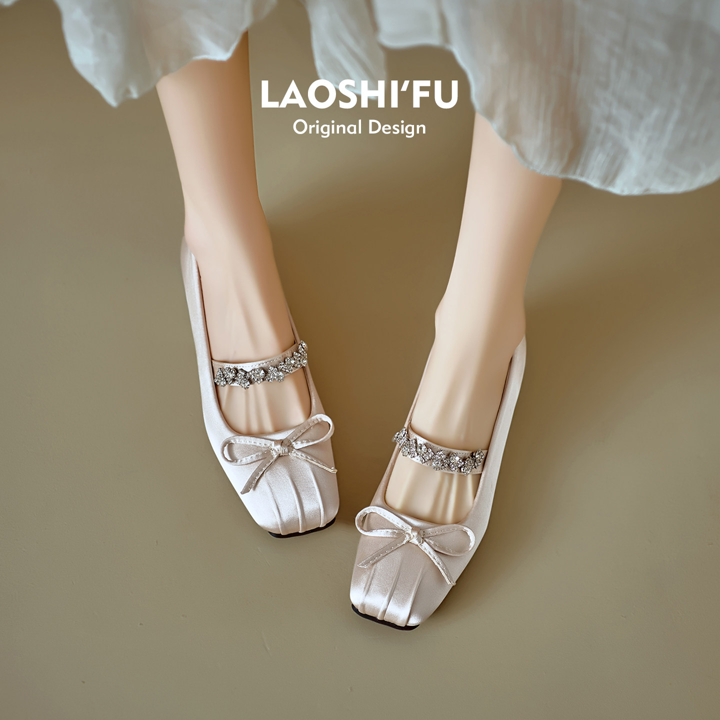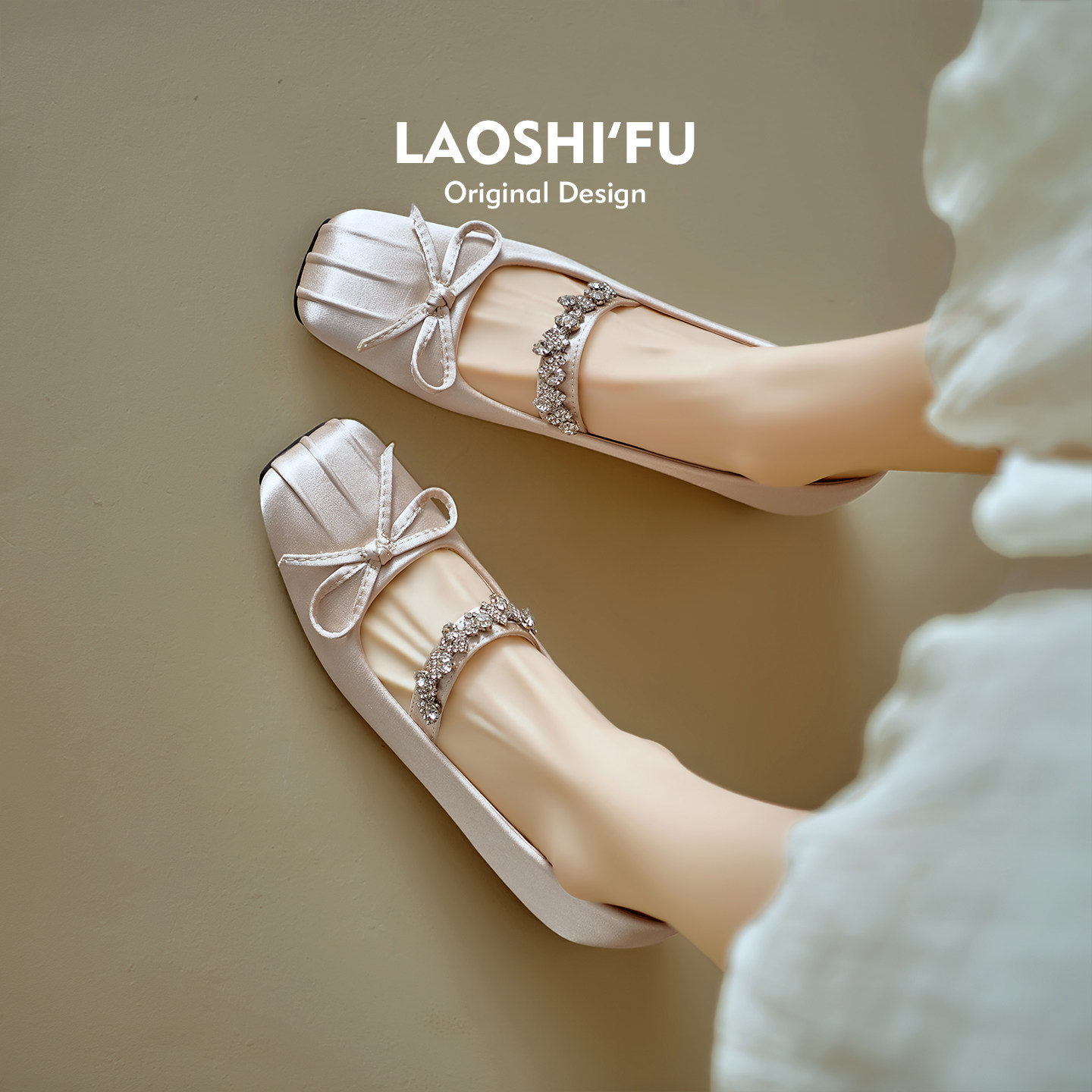 羊皮版~法式方头水钻蝴蝶结内增高玛丽珍鞋女2026新款一字带单鞋