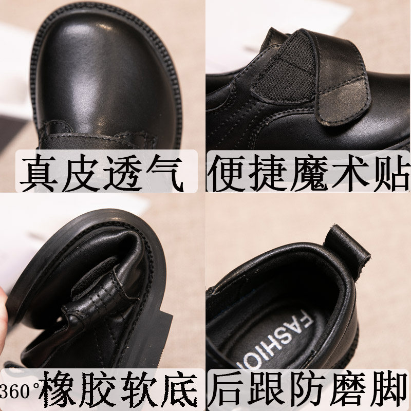 男童皮鞋真皮软底女童黑色英伦小学生春夏季透气镂空中大童演出鞋