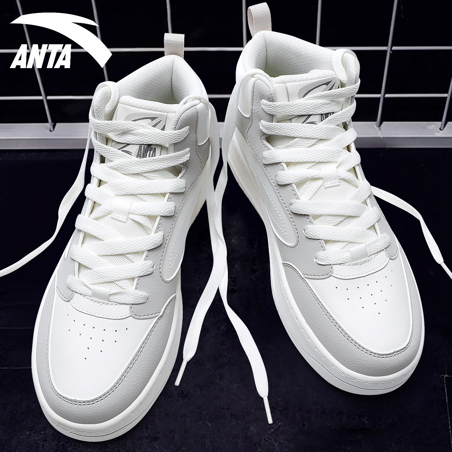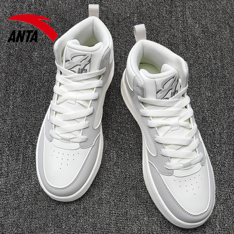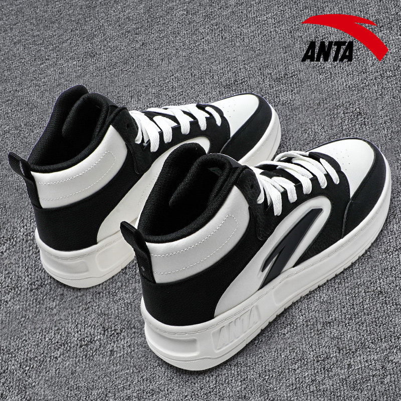 安踏高帮男鞋板鞋2026冬季新款皮面防泼水休闲鞋厚底增高男运动鞋