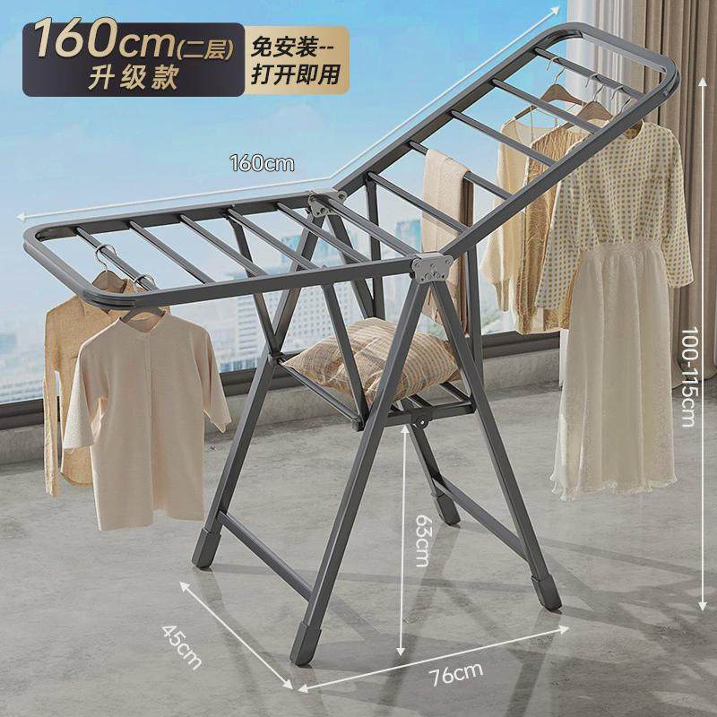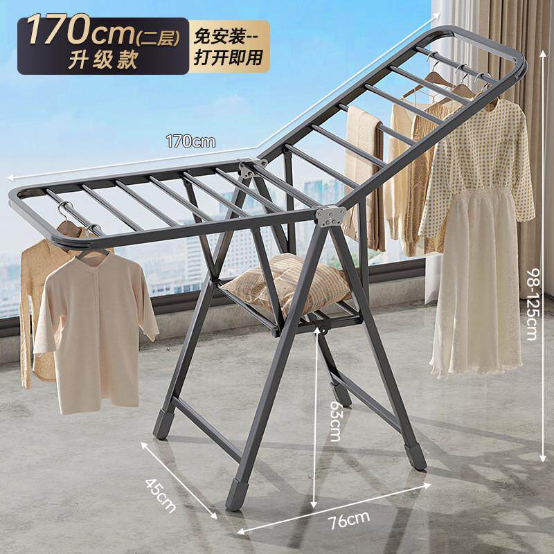 阳台简易落地式挂衣架室内防风凉衣杆家用晒被子多功能折叠晾衣架