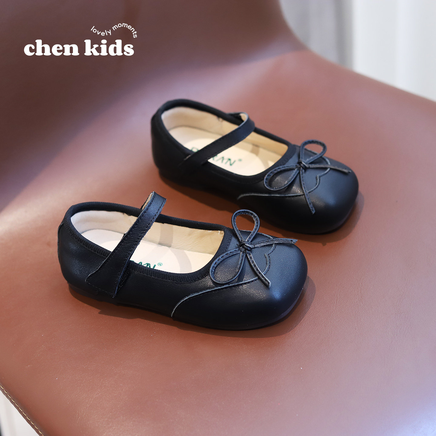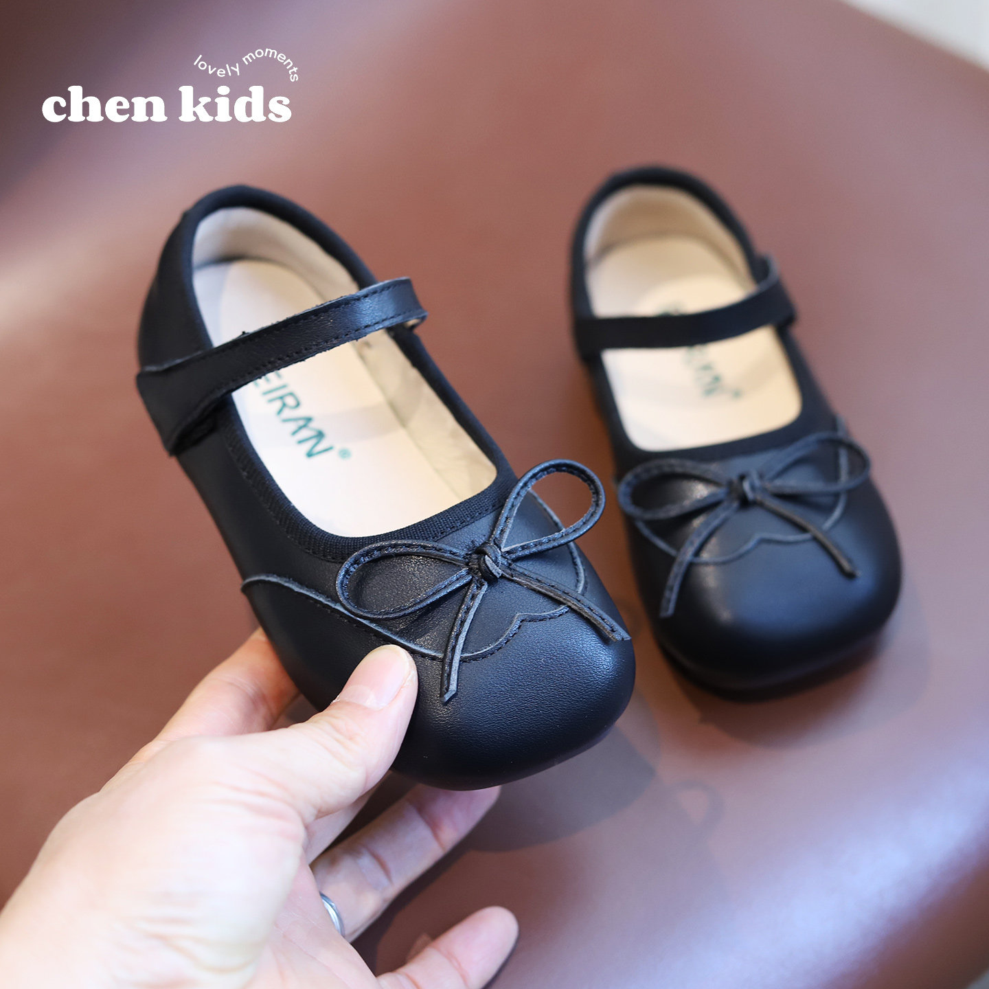皮鞋女童黑色2025新款公主鞋真皮软底小女孩洋气浅口鞋蝴蝶结银色