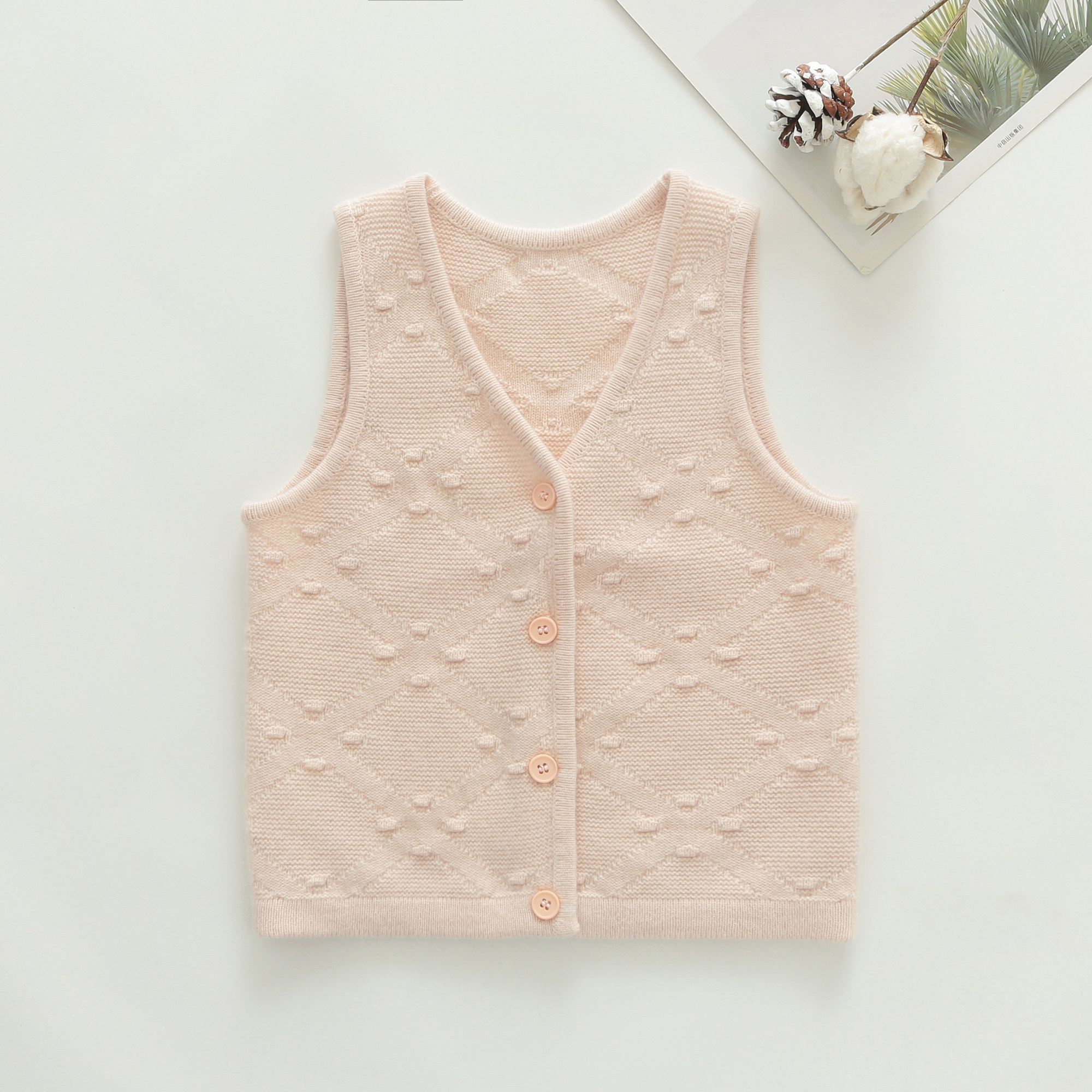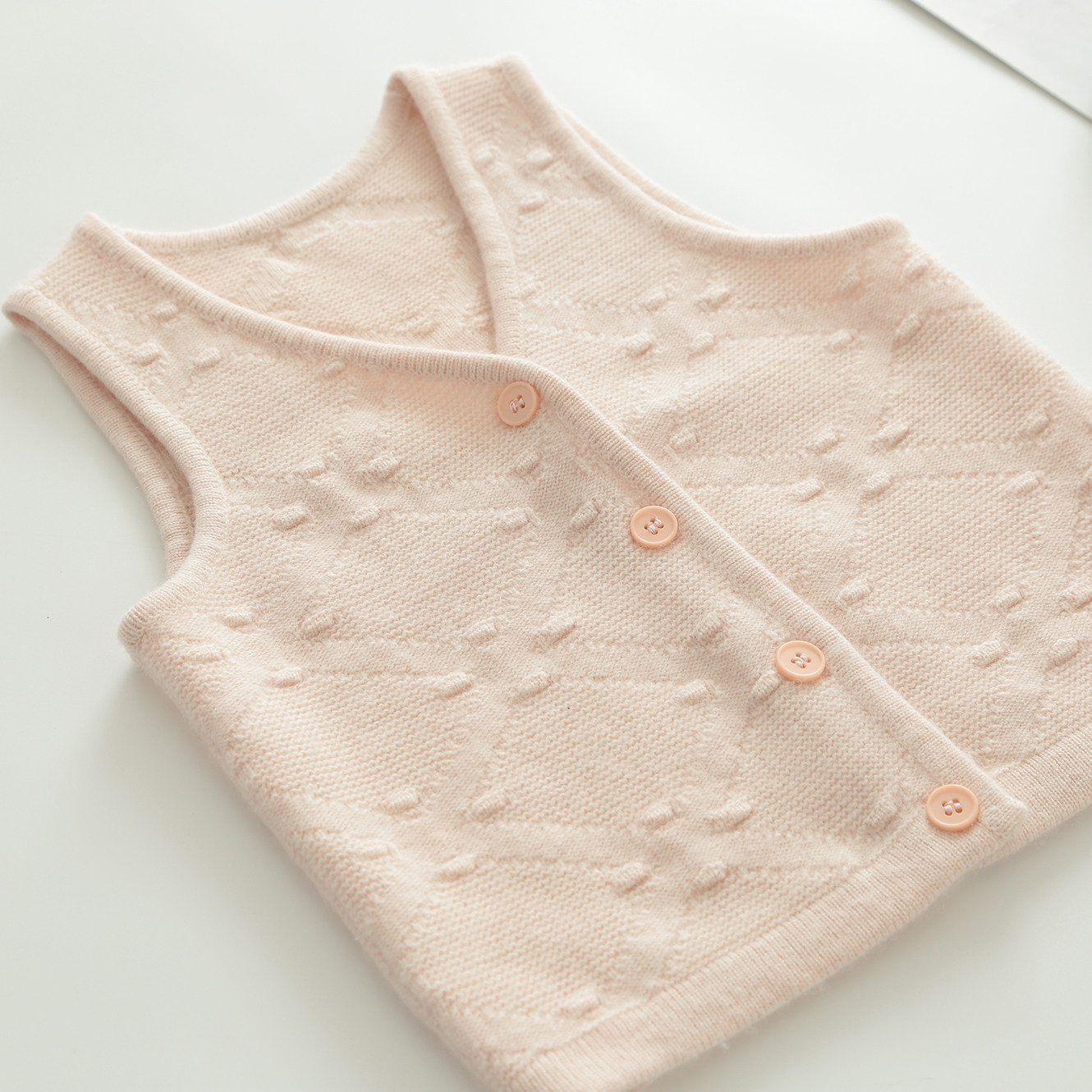 春秋季女童羊绒衫背心儿童毛衣开衫马甲宝宝羊毛衫中小童亮粉色