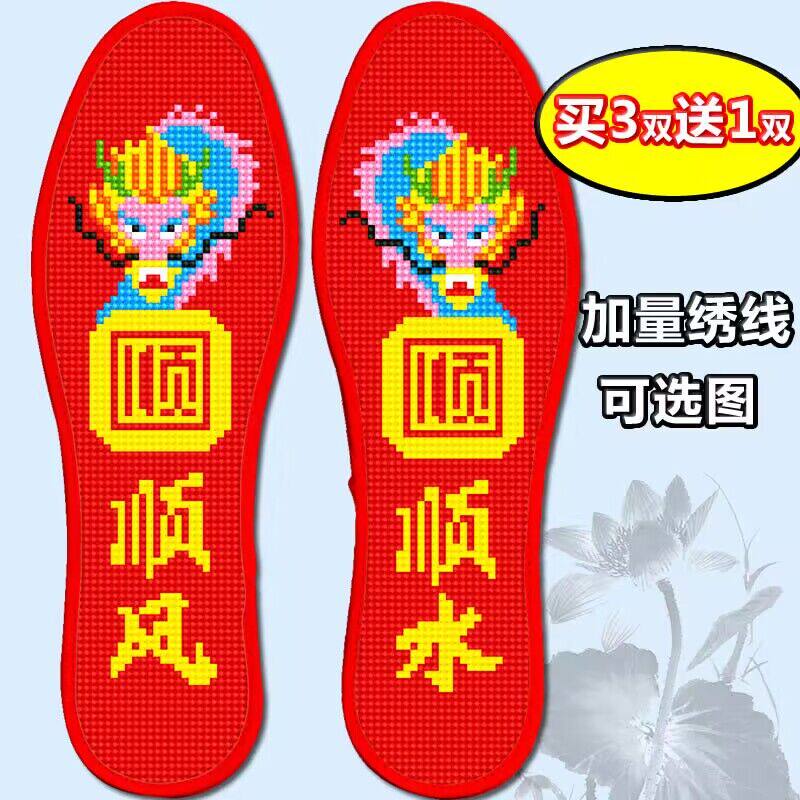 新款加厚十字绣花鞋垫针孔男女4104一帆风顺平安喜庆结婚吸汗透气
