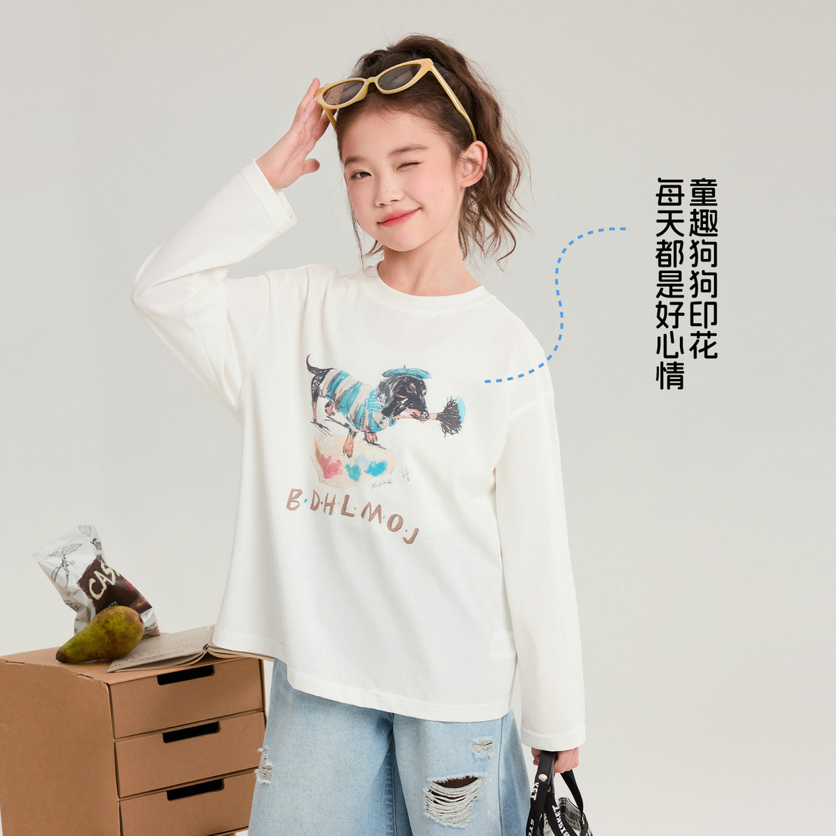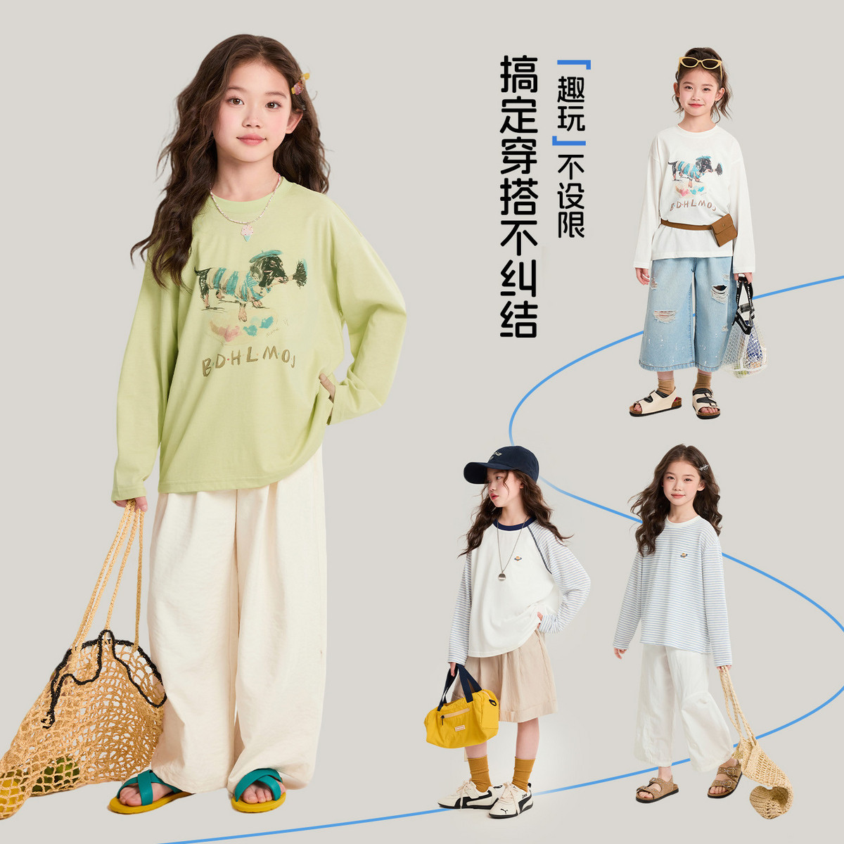 布丁哈鲁夏装女童童装简约上衣2026夏季新款儿童卡通透气休闲T恤