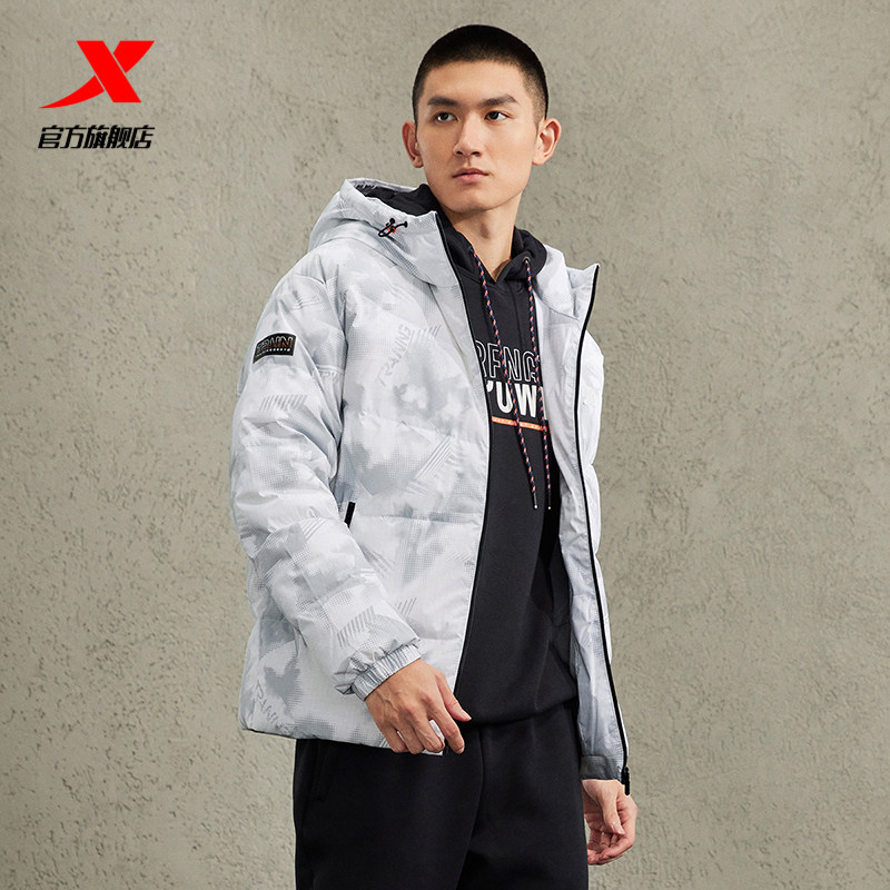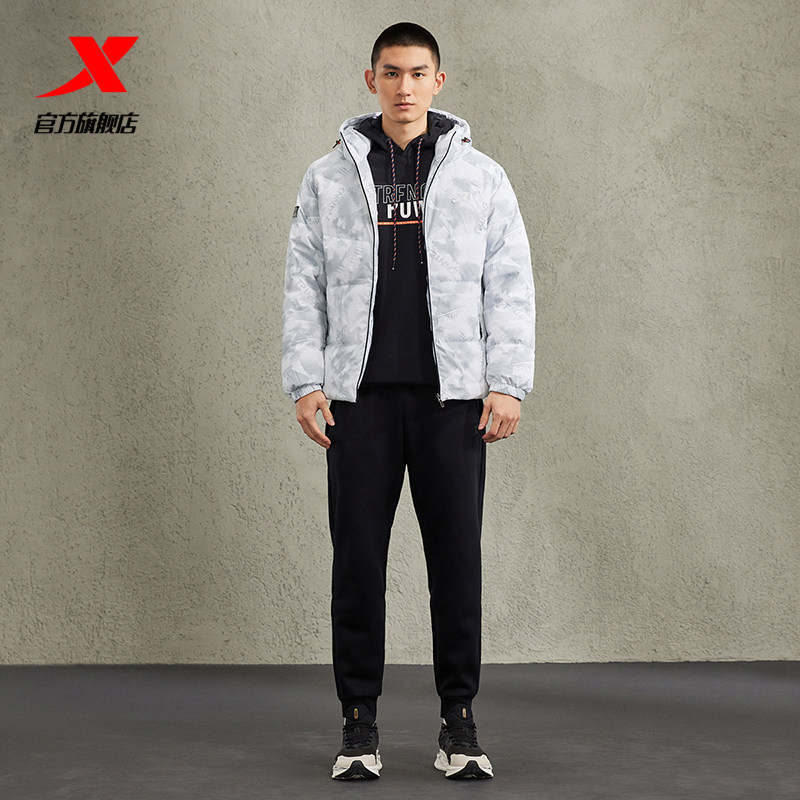 特步有暖气运动羽绒服男短款加厚2026春季连帽情侣休闲保暖外套女