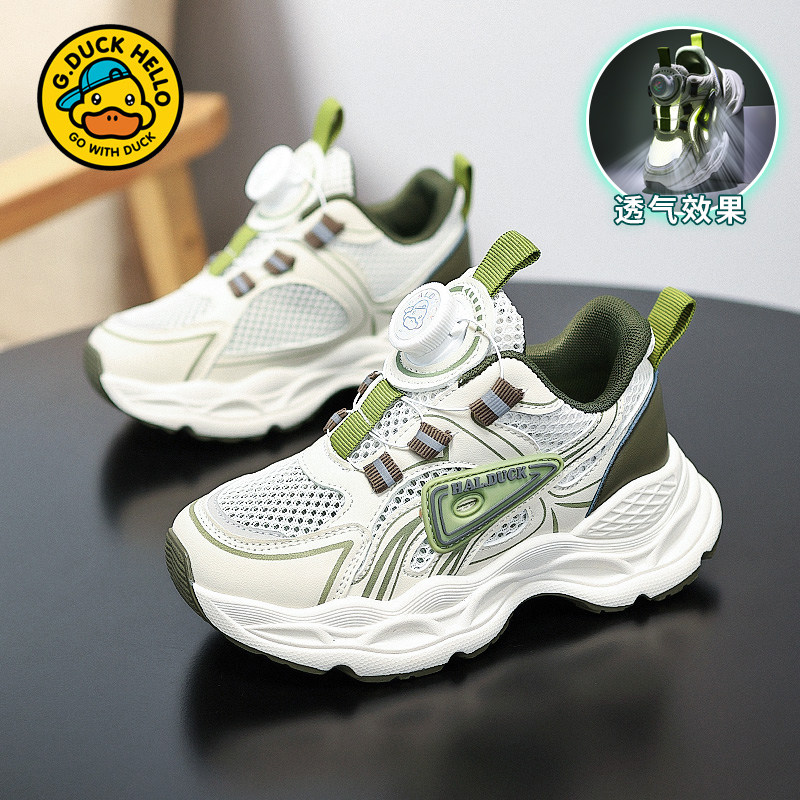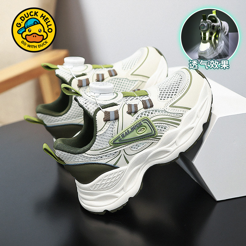 小黄鸭男童鞋子夏季2026新款网面透气单网鞋儿童纽扣鞋休闲运动鞋