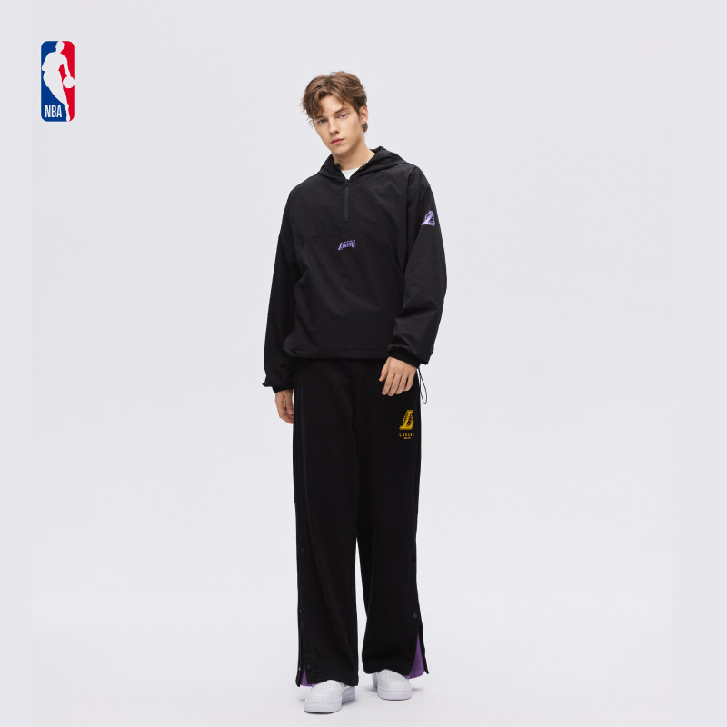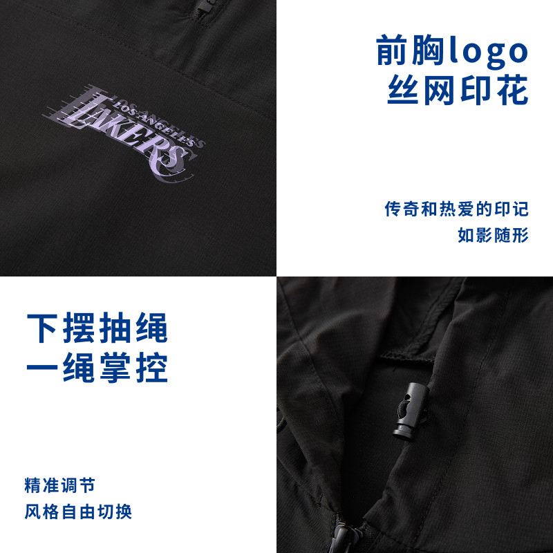 NBA官方勇士/湖人连帽防风休闲运动潮流半拉链卫衣外套
