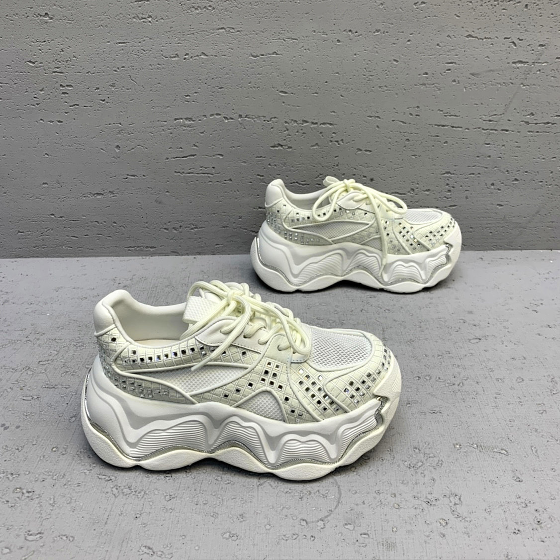 欧货2026春夏新款真皮女鞋增高烫钻网面欧洲站小众显脚瘦休闲鞋女
