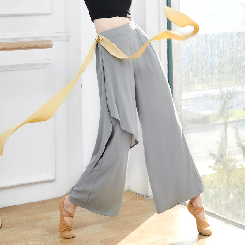 现代舞裤子古典舞蹈练功服女成人中国舞爵士舞直筒飘带演出服长裤