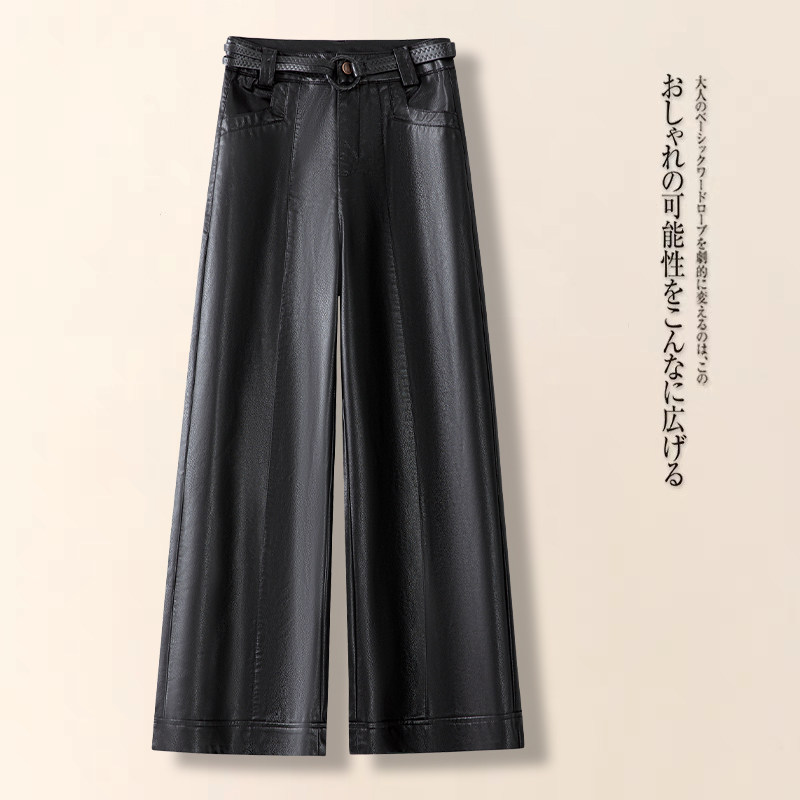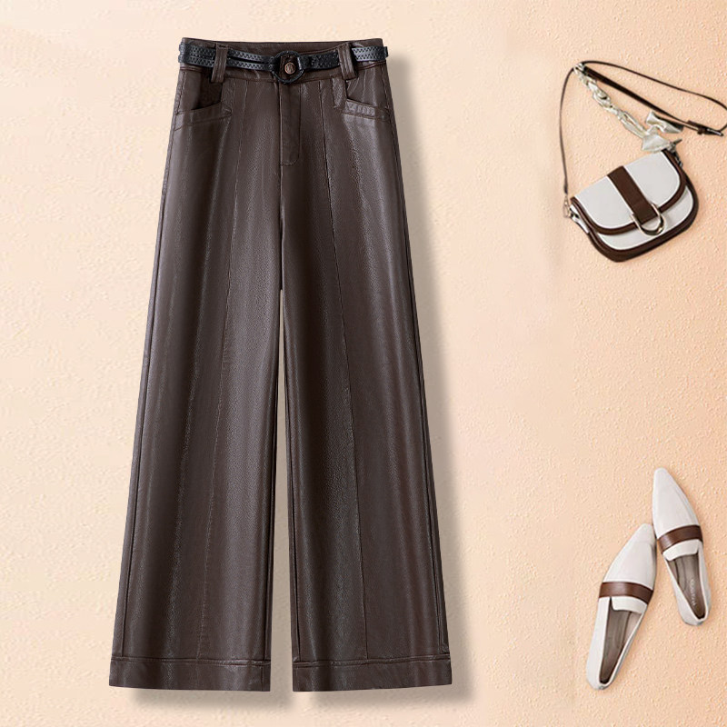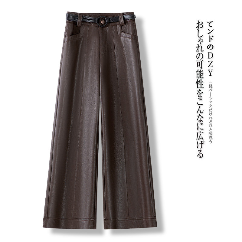 咖色高腰显瘦小个子阔腿皮裤2026春秋新款宽松直筒九分女款裤子