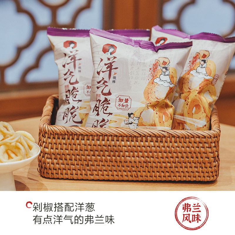 茶颜悦色洋气脆脆圈剁椒风味微辣洋葱圈咔呲休闲茶歇解馋零食6袋