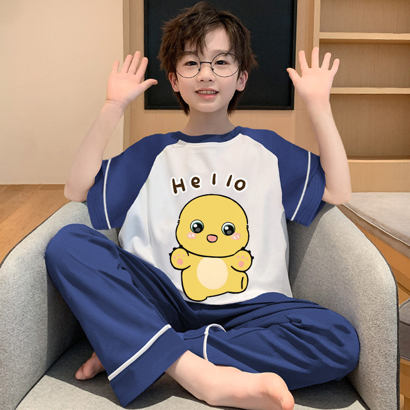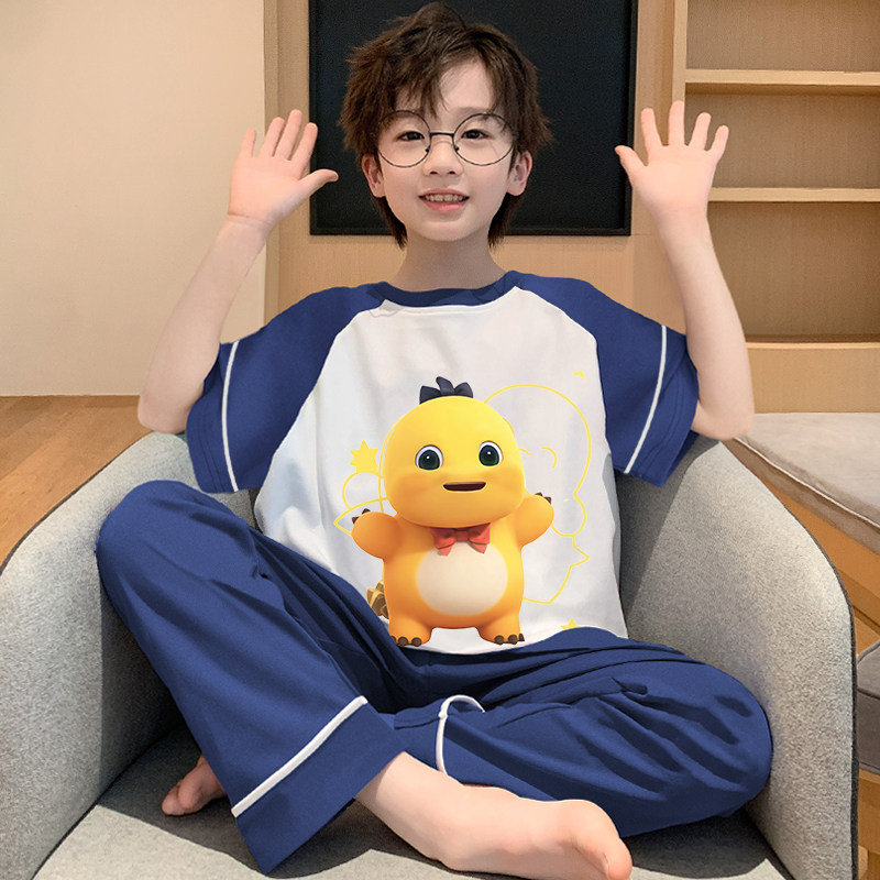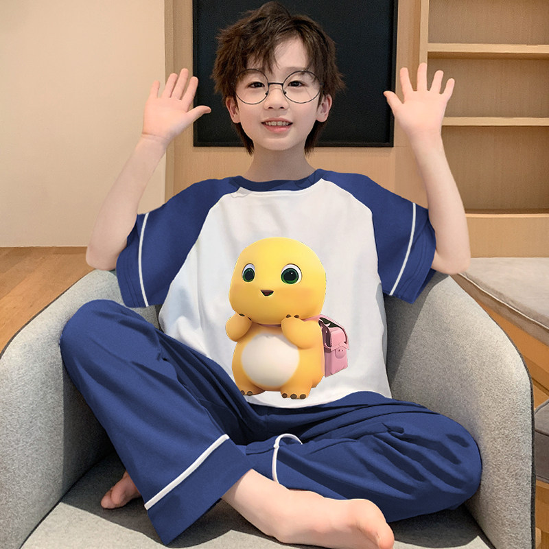 奶龙睡衣儿童夏季纯棉男童2025薄短袖长裤青少年家居服男孩夏套装