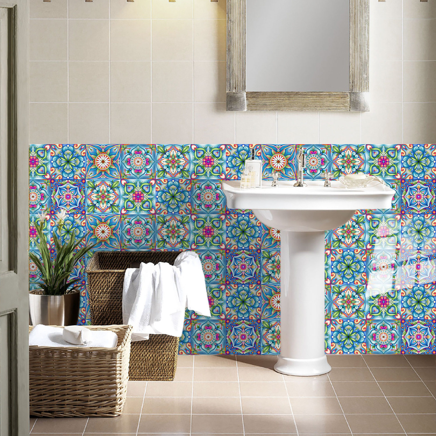 欧式花砖墙贴纸自粘浴室防油水厨房地板墙面楼梯瓷砖贴美化装饰品