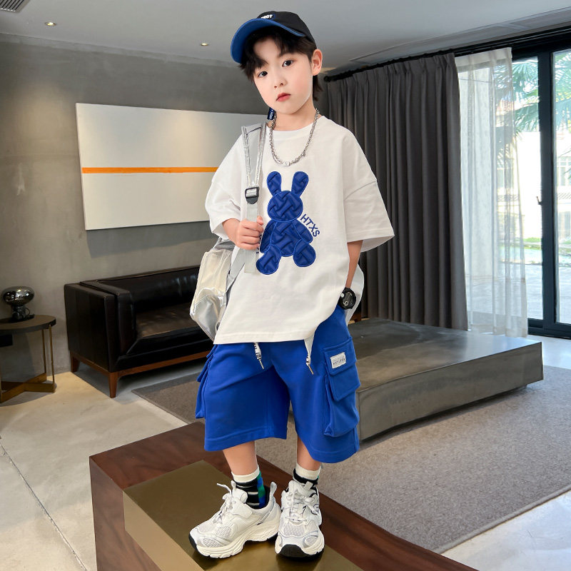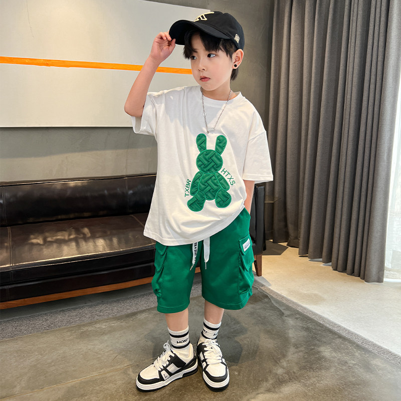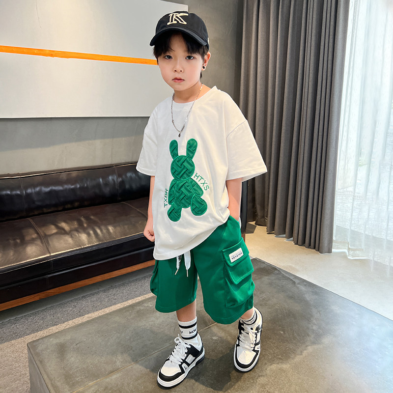 男童夏季时髦短袖套装2026新款男孩夏装酷帅T恤两件套男中大童潮t