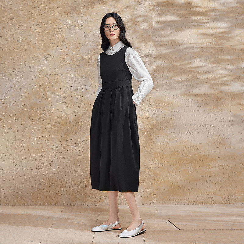 播黑色无袖连衣裙女2024夏季新款小个子叠穿森系长裙BDR2LD0643