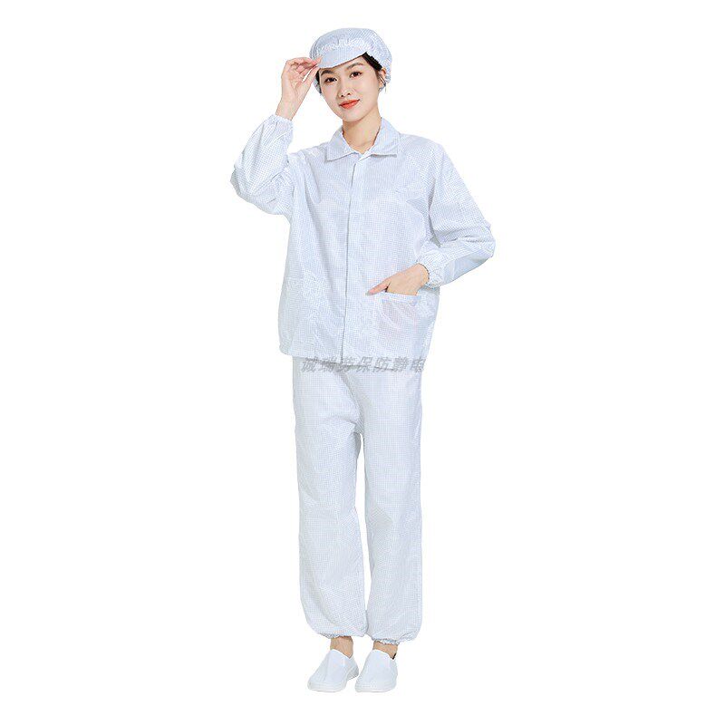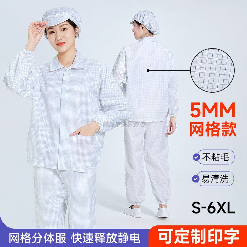 0.5网b格无尘服分体防尘上衣车间白色带口袋防静电工作服四季通用