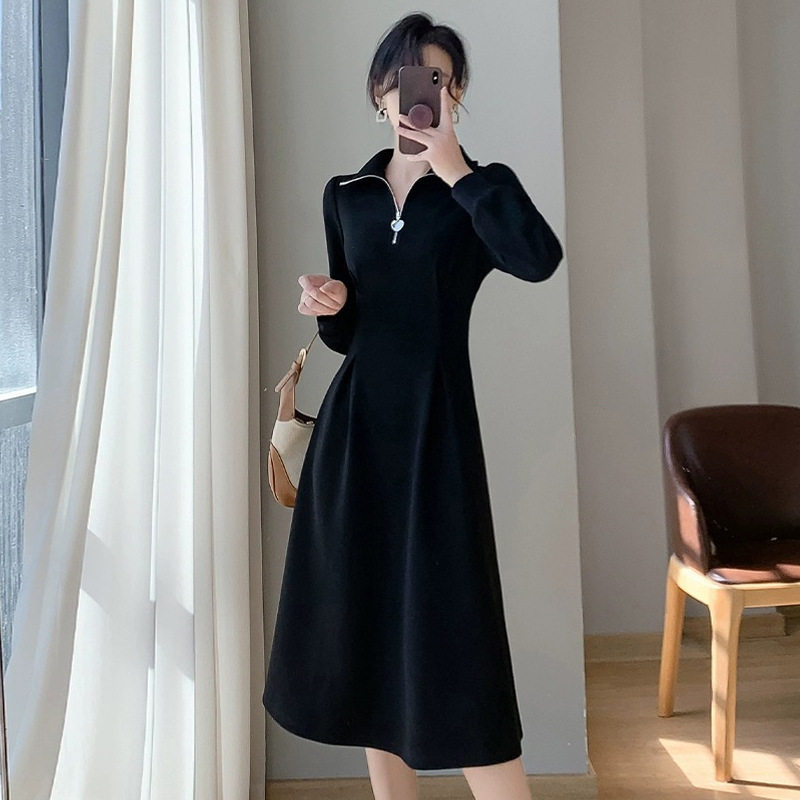 法式连衣裙女秋冬季小个子高级感气质加绒加厚配大衣内搭打底长裙