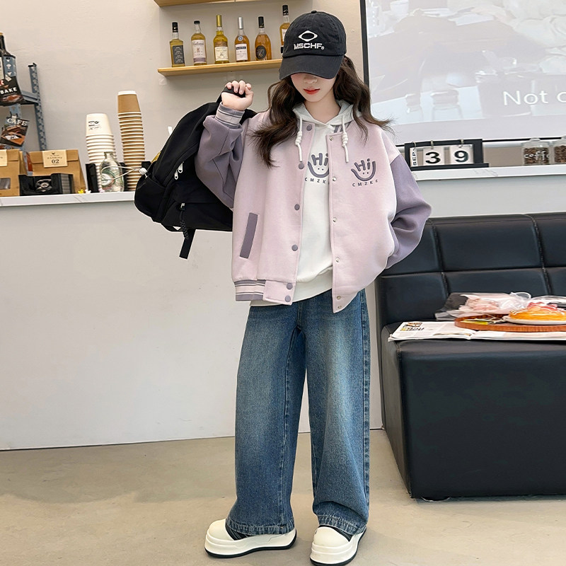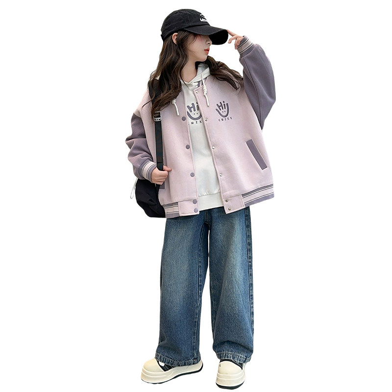 女童春秋套装2026新款洋气时髦女大童棒球服卫衣外套秋冬装三件套