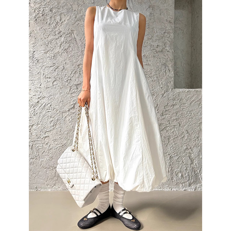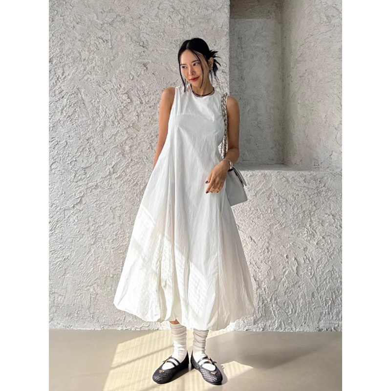 良良家白色无袖花苞裙背心连衣裙女夏季新款法式高级感宽松长裙子