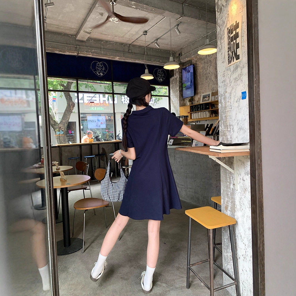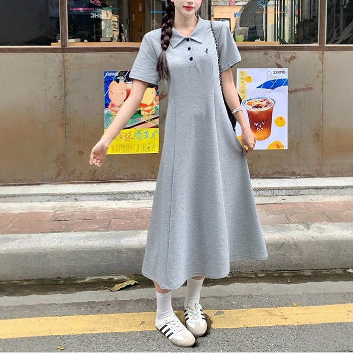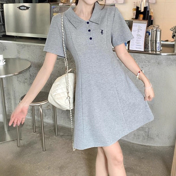 实拍2026夏装新款胖mm大码女减龄刺绣polo领收腰显瘦长短款连衣裙