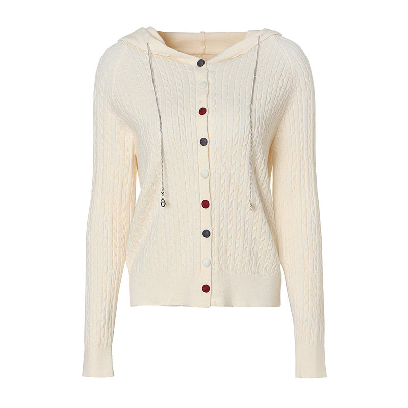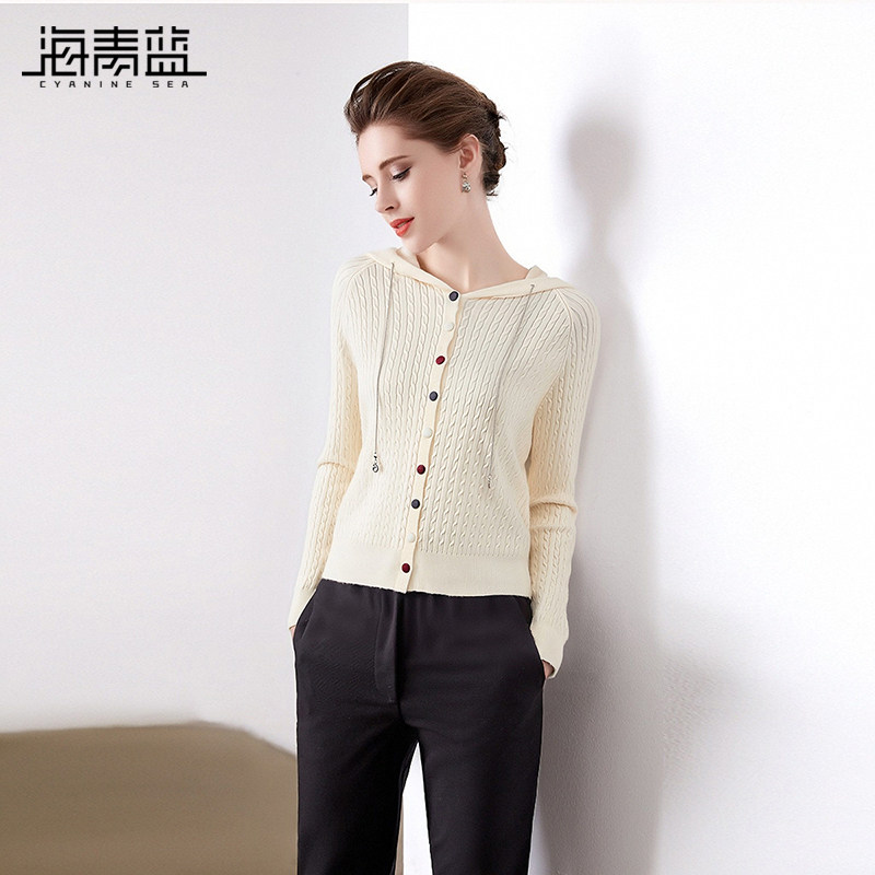 海青蓝 连帽针织衫春款2026新款女装长袖坑条打底内搭开衫上衣