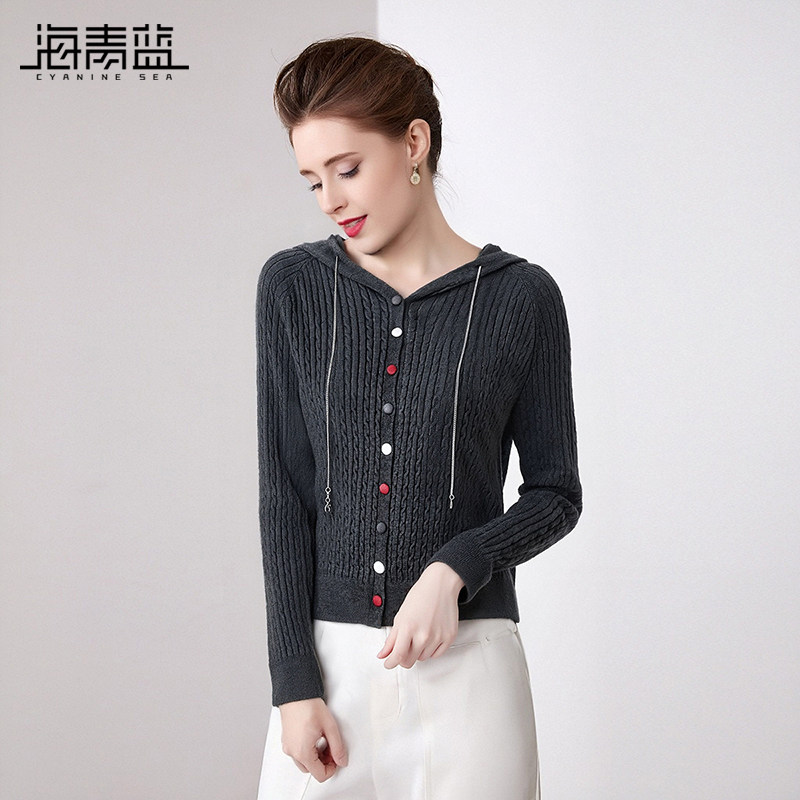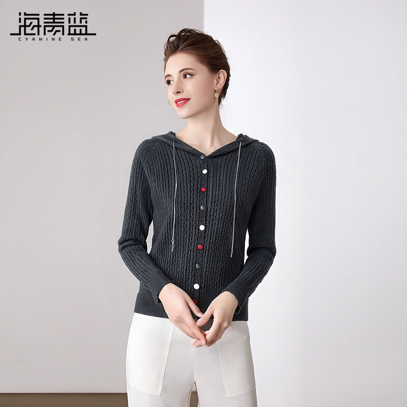 311线报网描述:海青蓝上衣连帽针织衫