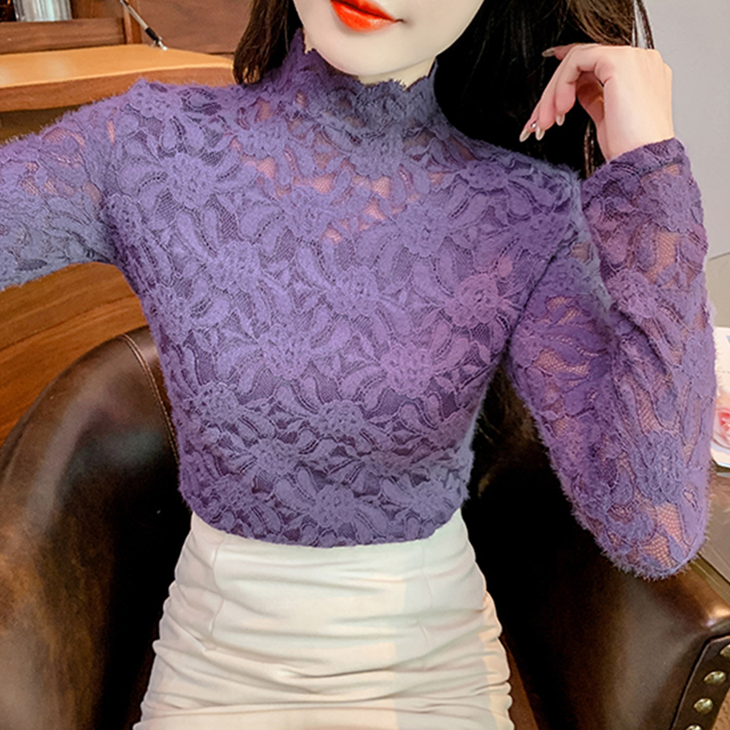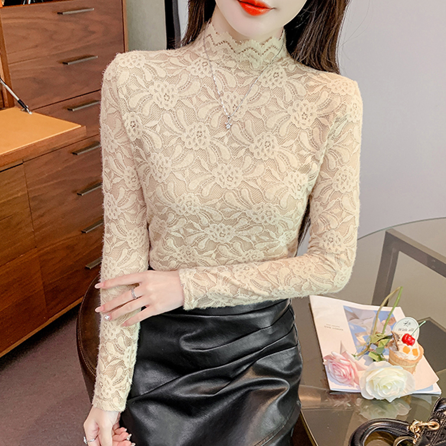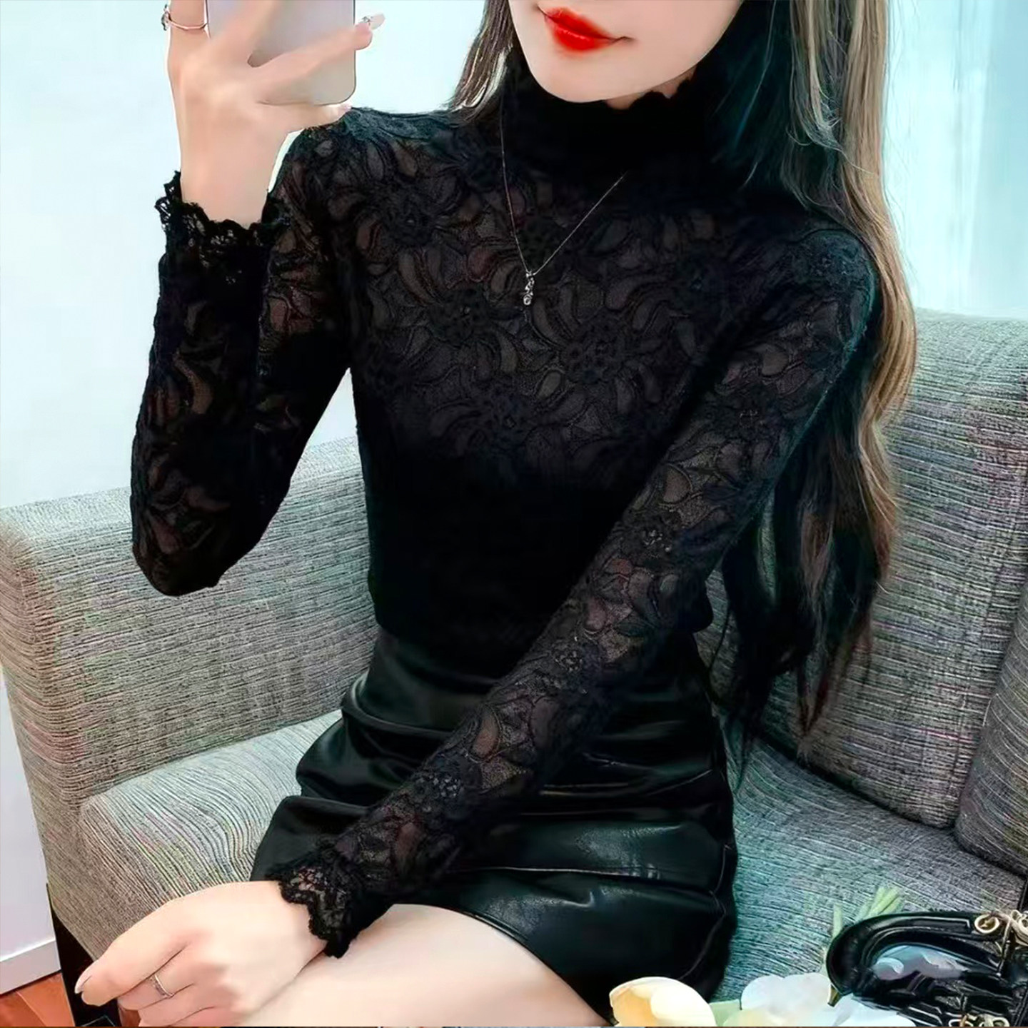半高领叠穿内搭小衫加绒蕾丝打底网纱上衣春款女装2026新款爆款