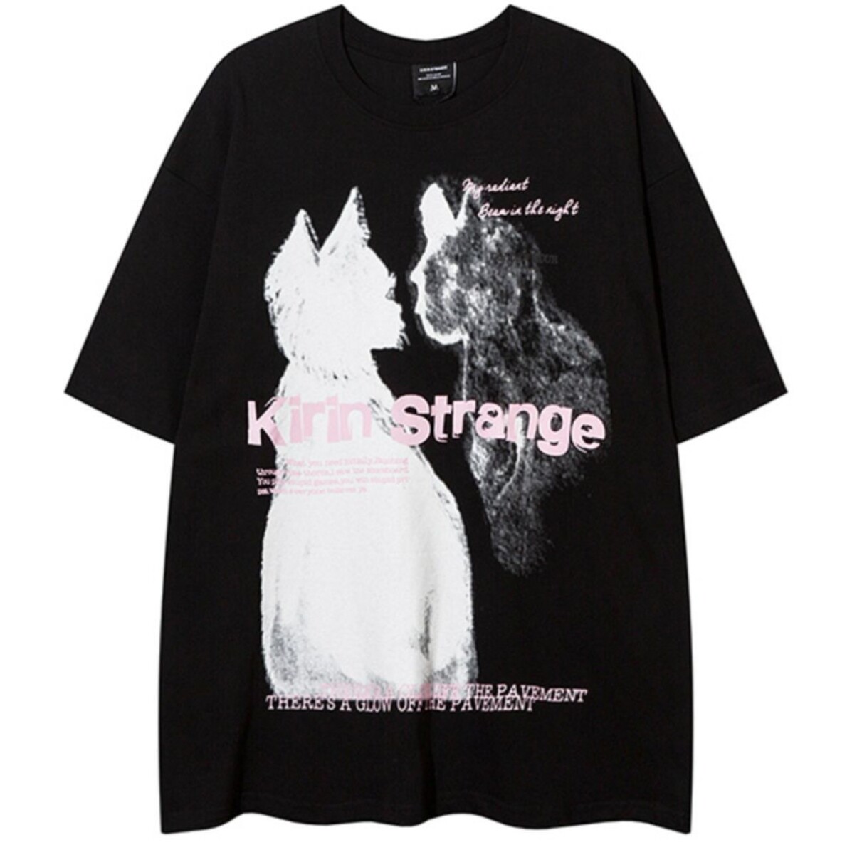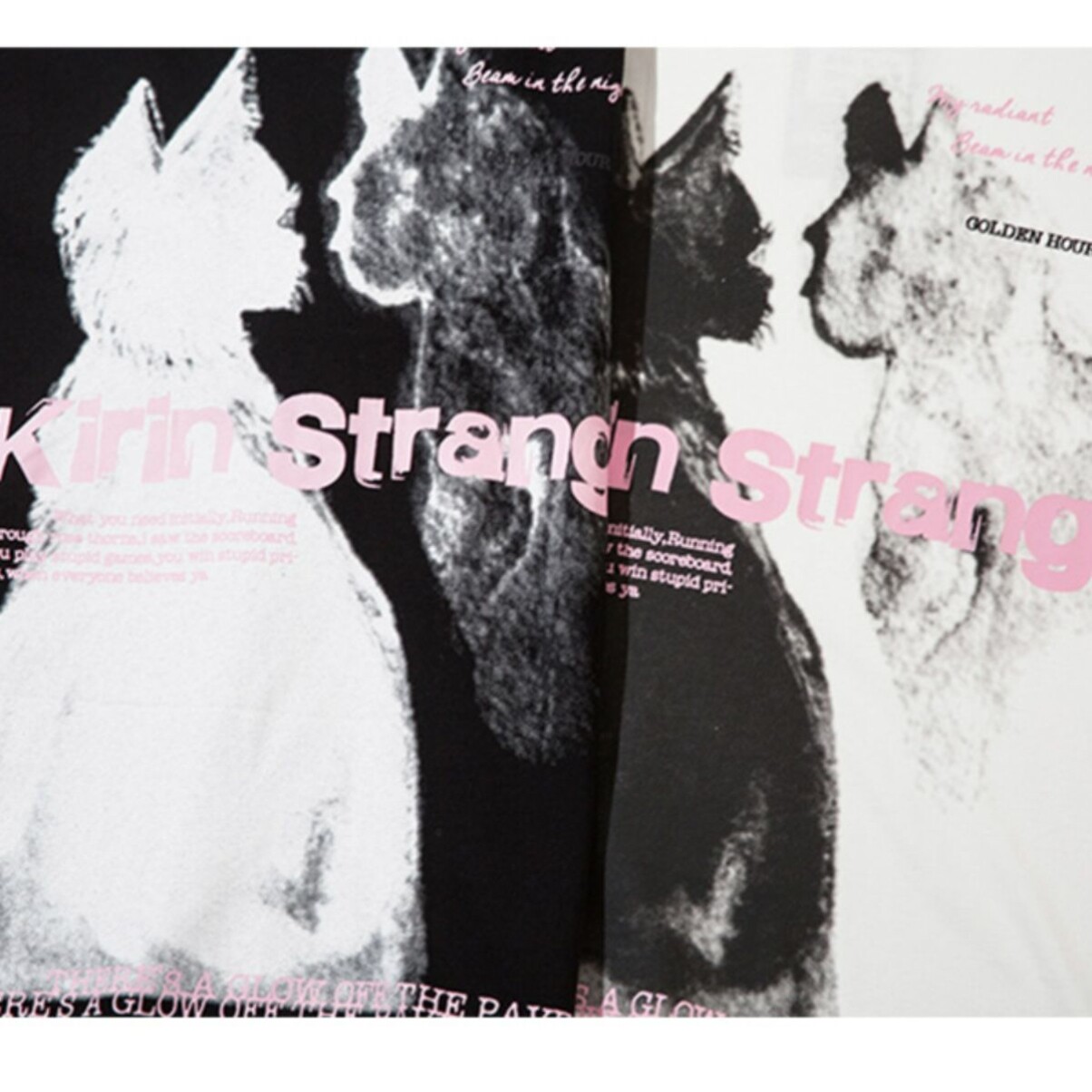 重磅纯棉童装T恤潮牌短袖男女童宽松猫咪印花中大童上衣韩版潮酷