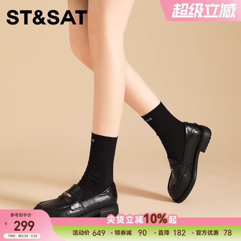 星期六厚底乐福鞋女款春季新款英伦风粗跟小皮鞋黑色单鞋百搭女鞋