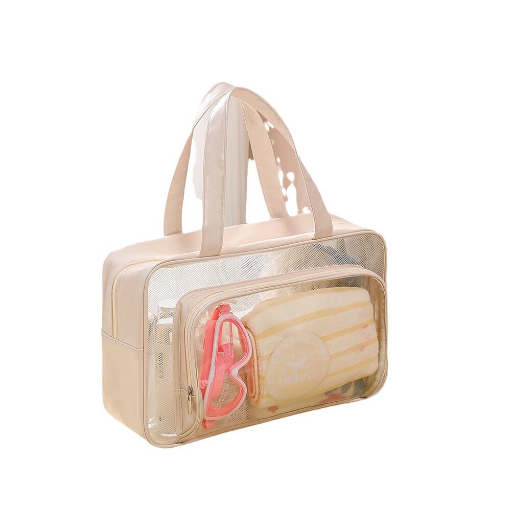新品 透明pvc洗漱包手提单肩干湿分离包游泳健身洗浴袋防水化妆收
