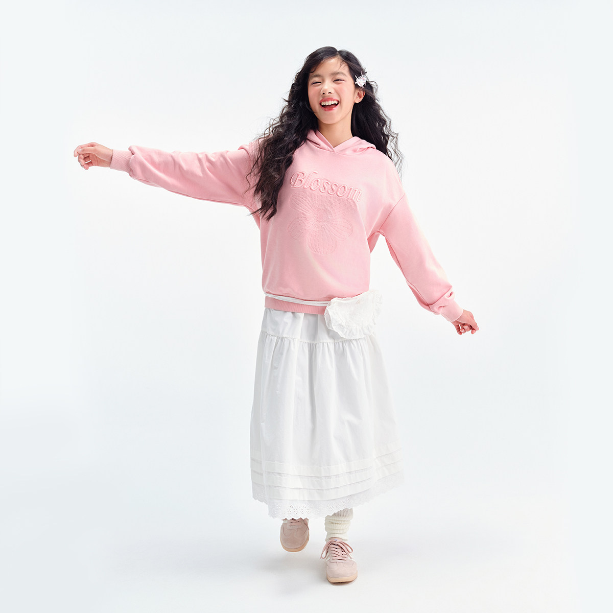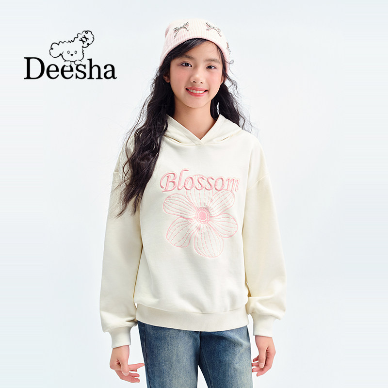 笛莎官方女大童2026春季新款青少年初高中生时尚甜美绣花连帽卫衣