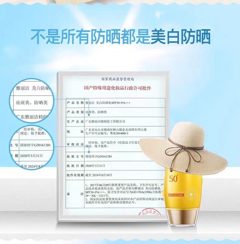 雅丽洁美白防晒霜女面部防紫外线清爽不油腻隔离乳正品官方吴小白