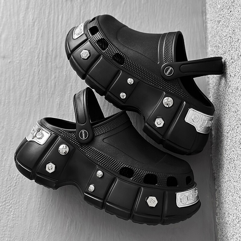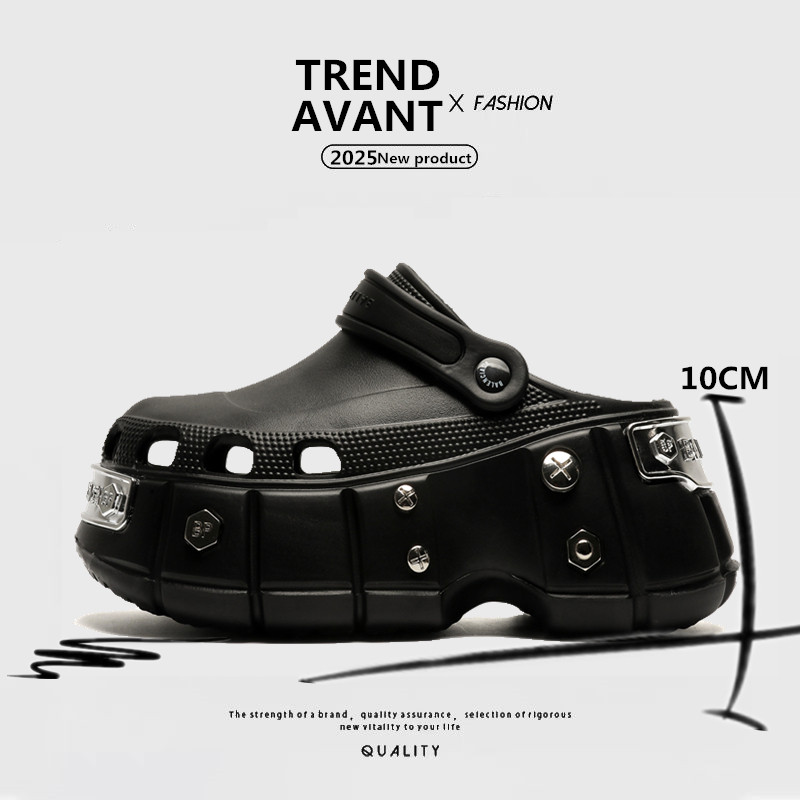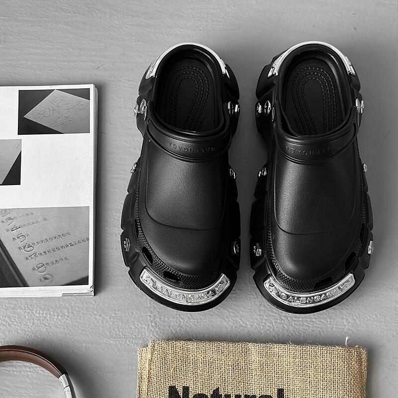 可乐の猫 洞洞鞋包头拖鞋男款厚底增高设计10cm半拖巴黎凉鞋女潮