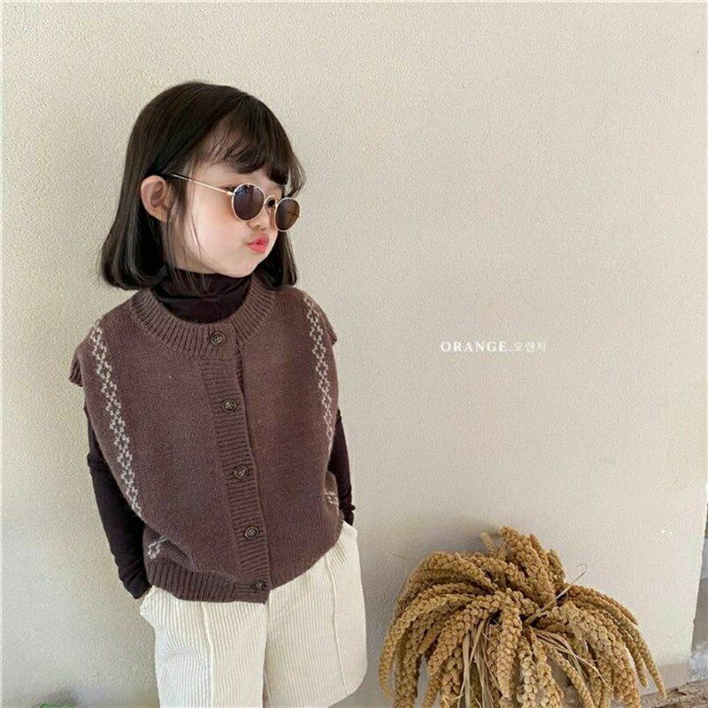 女童针织马甲春秋外穿新款韩版洋气开衫童装儿童秋装毛衣背心