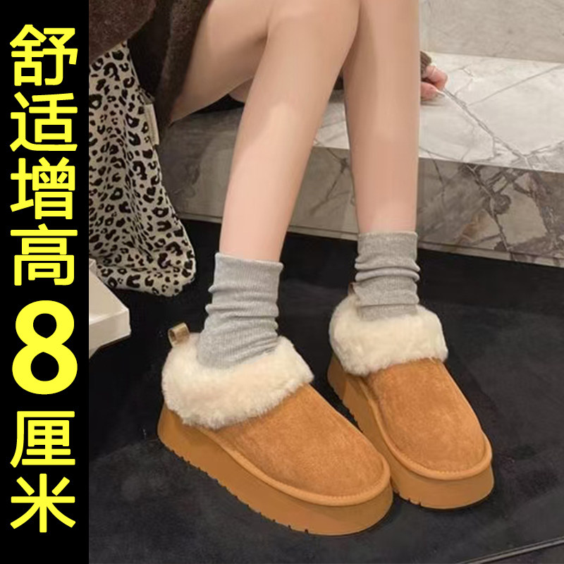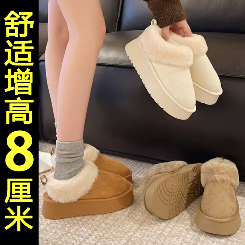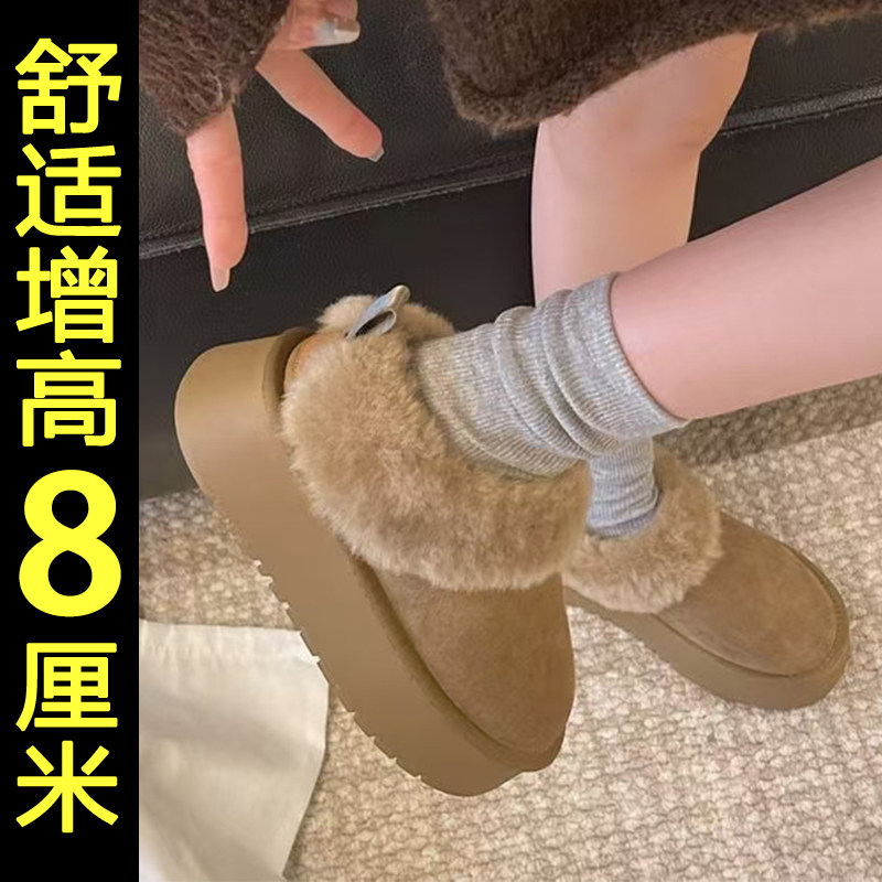 白色雪地靴女厚底2026新款冬季内增高保暖加绒加厚面包毛毛棉鞋